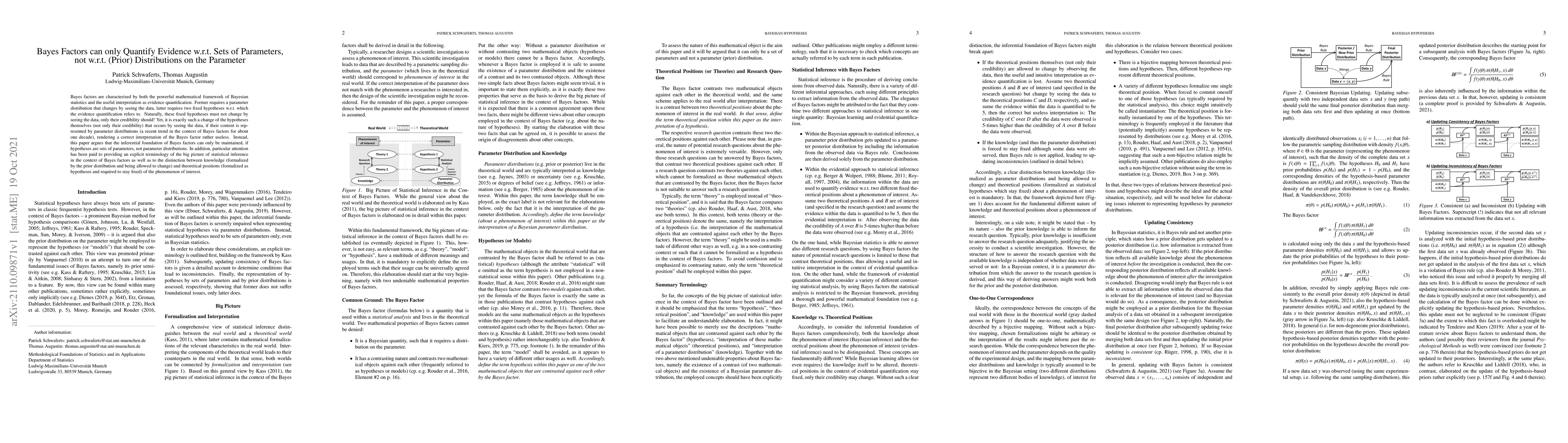 Bayes factors are characterized by both the powerful mathematical framework of Bayesian statistics and the useful interpretation as evidence quantification. Former requires a parameter distribution that changes by seeing the data, latter requires two fixed hypotheses w.r.t. which the evidence quantification refers to. Naturally, these fixed hypotheses must not change by seeing the data, only their credibility should! Yet, it is exactly such a change of the hypotheses themselves (not only their credibility) that occurs by seeing the data, if their content is represented by parameter distributions (a recent trend in the context of Bayes factors for about one decade), rendering a correct interpretation of the Bayes factor rather useless. Instead, this paper argues that the inferential foundation of Bayes factors can only be maintained, if hypotheses are sets of parameters, not parameter distributions. In addition, particular attention has been paid to providing an explicit terminology of the big picture of statistical inference in the context of Bayes factors as well as to the distinction between knowledge (formalized by the prior distribution and being allowed to change) and theoretical positions (formalized as hypotheses and required to stay fixed) of the phenomenon of interest.