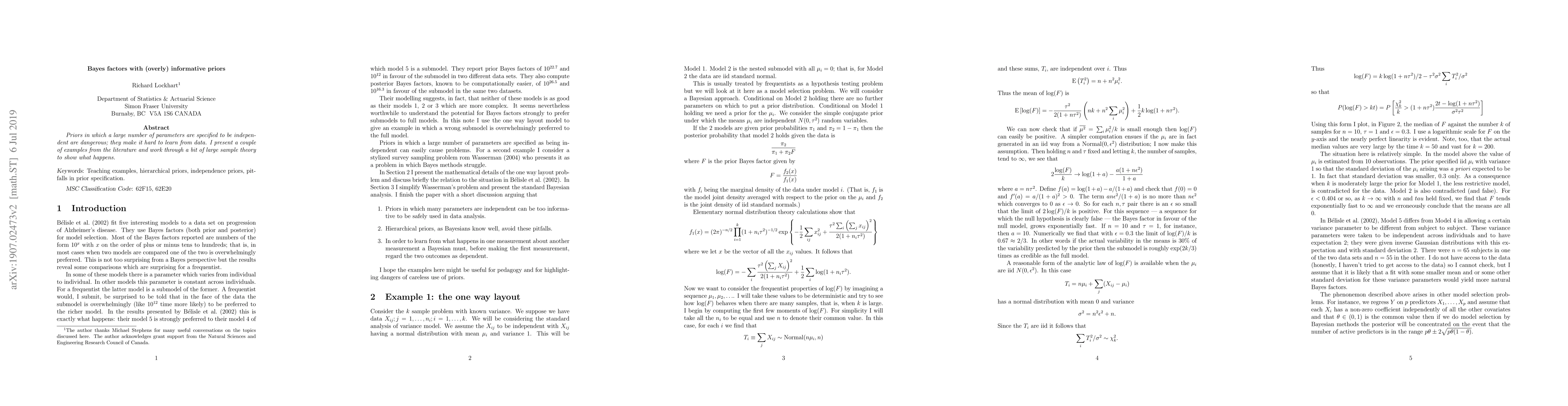 Priors in which a large number of parameters are specified to be independent are dangerous; they make it hard to learn from data. I present a couple of examples from the literature and work through a bit of large sample theory to show what happens.