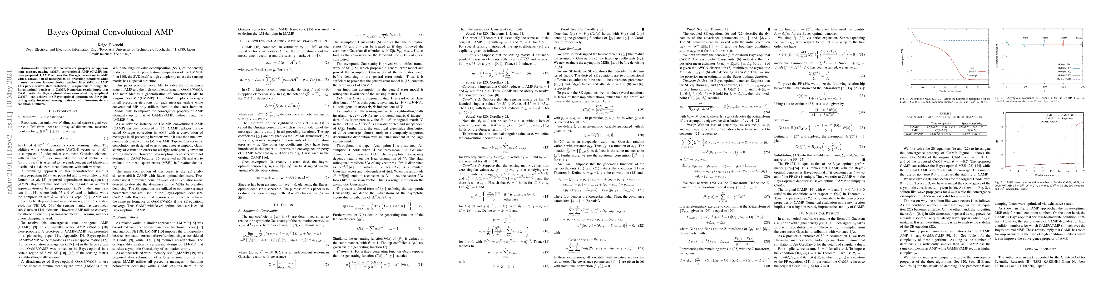 CAMP with a Bayes-optimal denoiser can achieve optimal performance for certain sensing matrices with low-to-moderate condition numbers. This improves the convergence property of approximate message-passing methods.