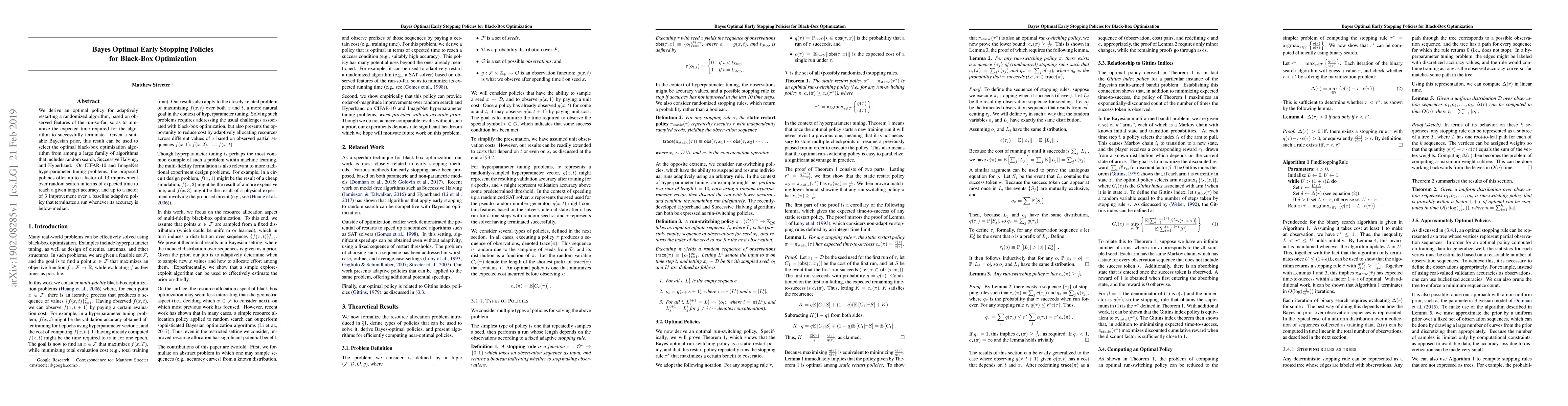 We derive an optimal policy for adaptively restarting a randomized algorithm, based on observed features of the run-so-far, so as to minimize the expected time required for the algorithm to successfully terminate. Given a suitable Bayesian prior, this result can be used to select the optimal black-box optimization algorithm from among a large family of algorithms that includes random search, Successive Halving, and Hyperband. On CIFAR-10 and ImageNet hyperparameter tuning problems, the proposed policies offer up to a factor of 13 improvement over random search in terms of expected time to reach a given target accuracy, and up to a factor of 3 improvement over a baseline adaptive policy that terminates a run whenever its accuracy is below-median.