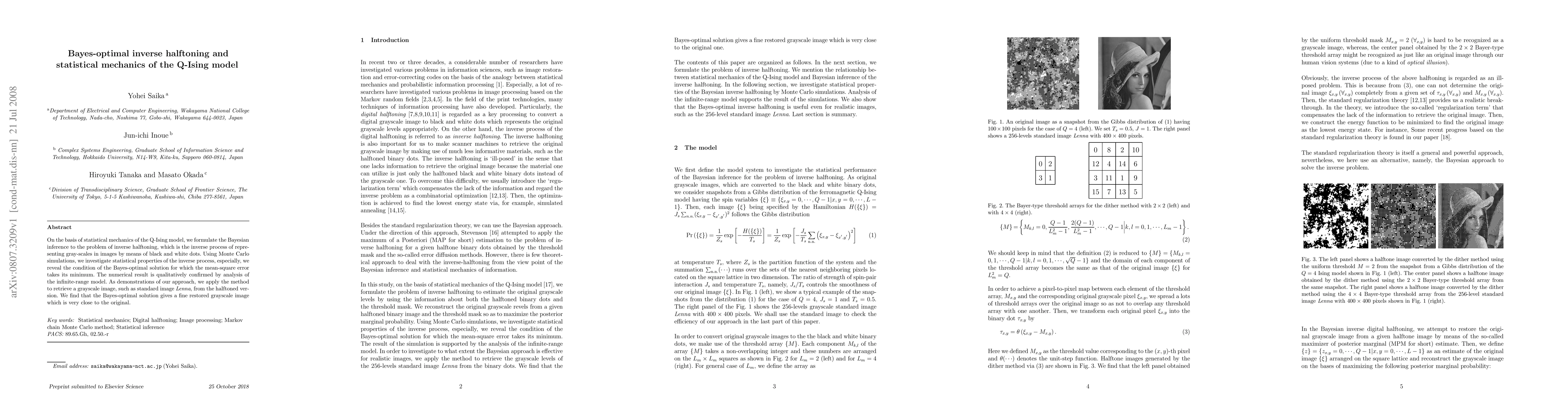 This paper formulates Bayesian inference for inverse halftoning using the statistical mechanics of the Q-Ising model, revealing the condition for the Bayes-optimal solution that minimizes mean-square error. The method is demonstrated through the successful recovery of a grayscale image from its halftoned version.