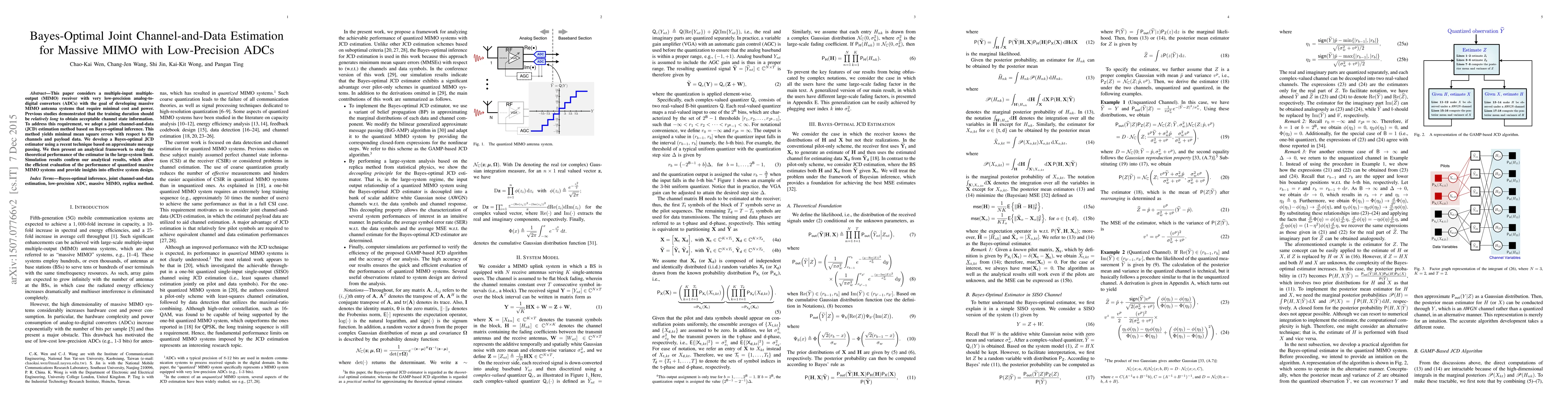 This paper develops a Bayes-optimal joint channel-and-data estimation method for low-precision ADCs in massive MIMO systems, aiming to minimize cost and power. The proposed method achieves minimal mean square errors and is validated through analytical and simulation results.