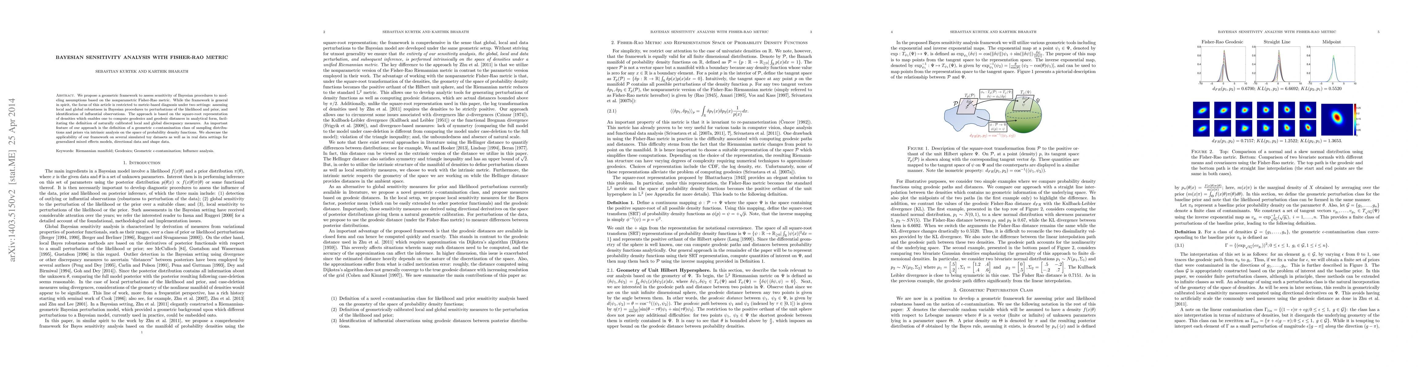 We propose a geometric framework to assess sensitivity of Bayesian procedures to modeling assumptions based on the nonparametric Fisher-Rao metric. While the framework is general in spirit, the focus of this article is restricted to metric-based diagnosis under two settings: assessing local and global robustness in Bayesian procedures to perturbations of the likelihood and prior, and identification of influential observations. The approach is based on the square-root representation of densities which enables one to compute geodesics and geodesic distances in analytical form, facilitating the definition of naturally calibrated local and global discrepancy measures. An important feature of our approach is the definition of a geometric $\epsilon$-contamination class of sampling distributions and priors via intrinsic analysis on the space of probability density functions. We showcase the applicability of our framework on several simulated toy datasets as well as in real data settings for generalized mixed effects models, directional data and shape data.