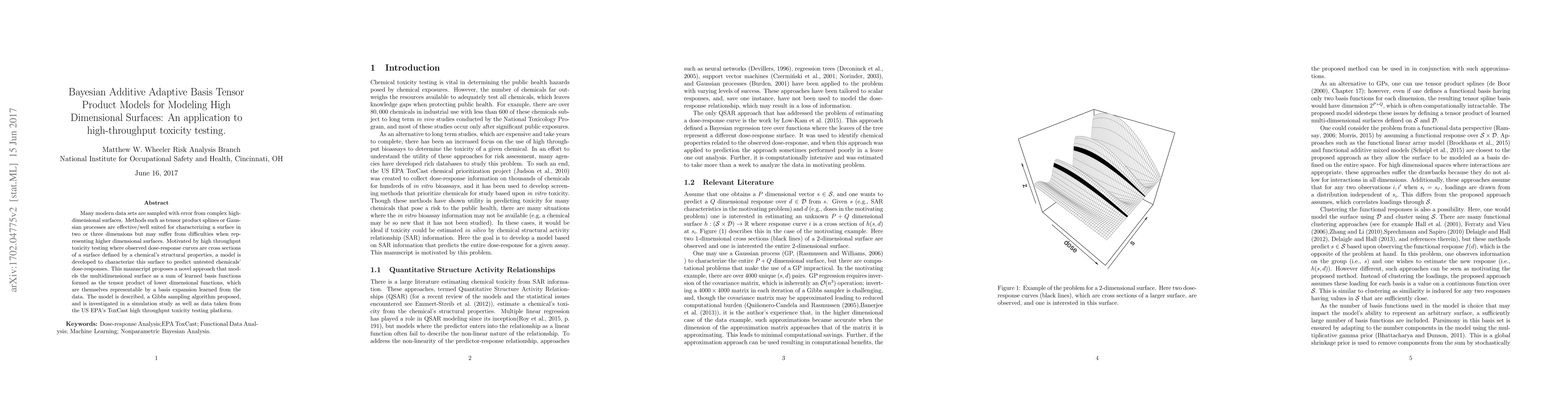 Many modern data sets are sampled with error from complex high-dimensional surfaces. Methods such as tensor product splines or Gaussian processes are effective/well suited for characterizing a surface in two or three dimensions but may suffer from difficulties when representing higher dimensional surfaces. Motivated by high throughput toxicity testing where observed dose-response curves are cross sections of a surface defined by a chemical's structural properties, a model is developed to characterize this surface to predict untested chemicals' dose-responses. This manuscript proposes a novel approach that models the multidimensional surface as a sum of learned basis functions formed as the tensor product of lower dimensional functions, which are themselves representable by a basis expansion learned from the data. The model is described, a Gibbs sampling algorithm proposed, and is investigated in a simulation study as well as data taken from the US EPA's ToxCast high throughput toxicity testing platform.