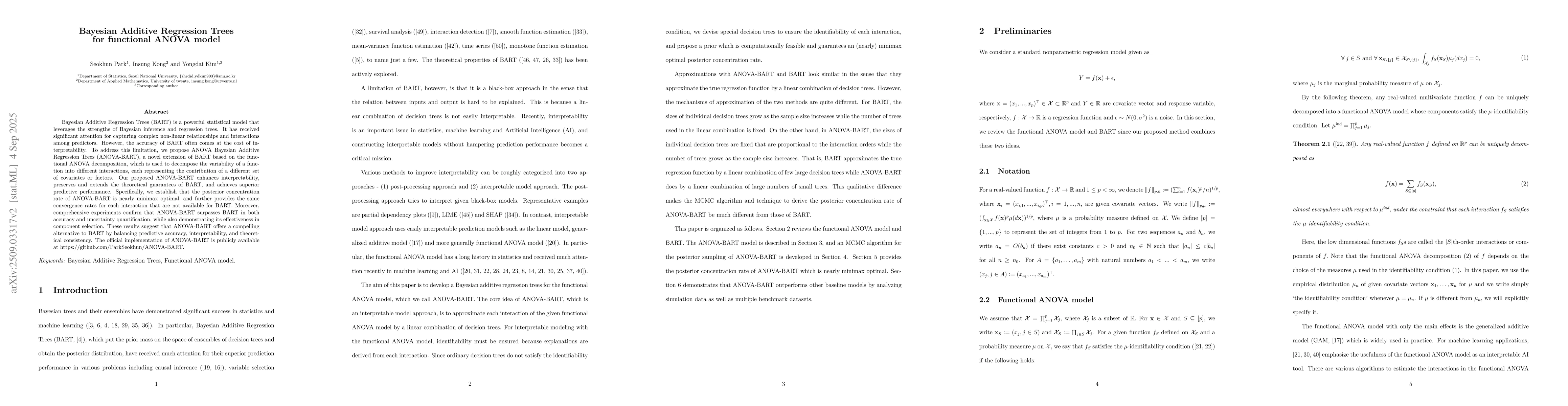 Bayesian Additive Regression Trees (BART) is a powerful statistical model that leverages the strengths of Bayesian inference and regression trees. It has received significant attention for capturing complex non-linear relationships and interactions among predictors. However, the accuracy of BART often comes at the cost of interpretability. To address this limitation, we propose ANOVA Bayesian Additive Regression Trees (ANOVA-BART), a novel extension of BART based on the functional ANOVA decomposition, which is used to decompose the variability of a function into different interactions, each representing the contribution of a different set of covariates or factors. Our proposed ANOVA-BART enhances interpretability, preserves and extends the theoretical guarantees of BART, and achieves superior predictive performance. Specifically, we establish that the posterior concentration rate of ANOVA-BART is nearly minimax optimal, and further provides the same convergence rates for each interaction that are not available for BART. Moreover, comprehensive experiments confirm that ANOVA-BART surpasses BART in both accuracy and uncertainty quantification, while also demonstrating its effectiveness in component selection. These results suggest that ANOVA-BART offers a compelling alternative to BART by balancing predictive accuracy, interpretability, and theoretical consistency.