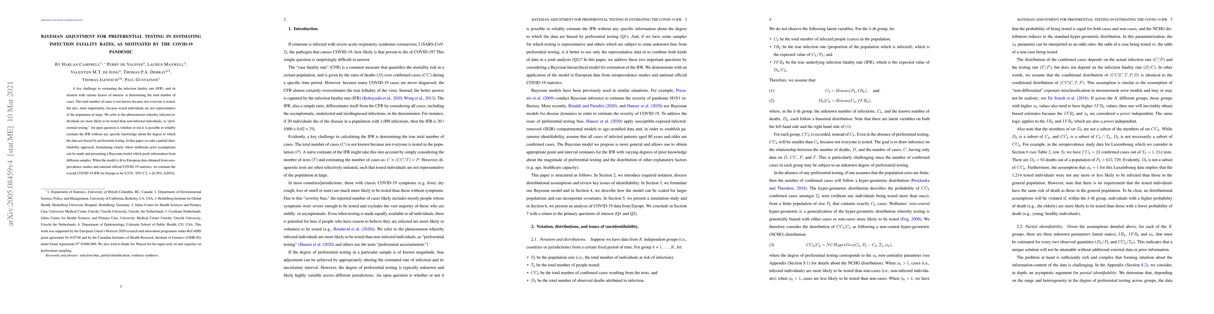 This paper proposes a Bayesian model to estimate the COVID-19 infection fatality rate (IFR) by addressing preferential testing biases. The authors estimate the overall IFR for Europe at 0.53%, with a 95% confidence interval of [0.39%, 0.69%], using data from seroprevalence studies and official statistics.