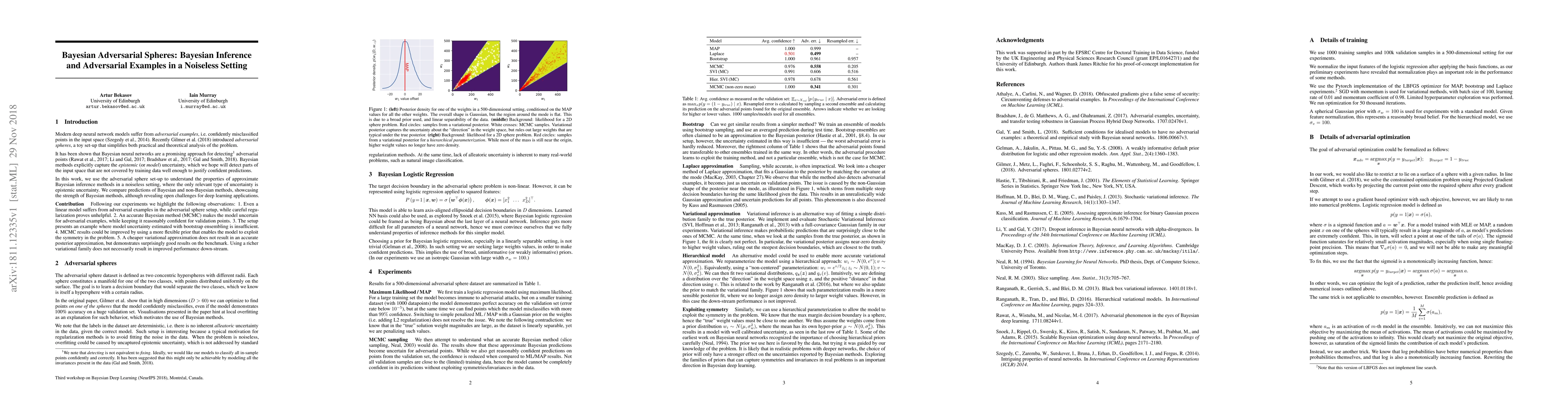 This paper explores the use of Bayesian inference methods in detecting adversarial examples within a simplified noiseless linear model, leveraging the adversarial spheres framework introduced by Gilmer et al. (2018) to compare Bayesian and non-Bayesian approaches, highlighting the benefits of Bayesian methods despite the challenges they pose for deep learning applications.