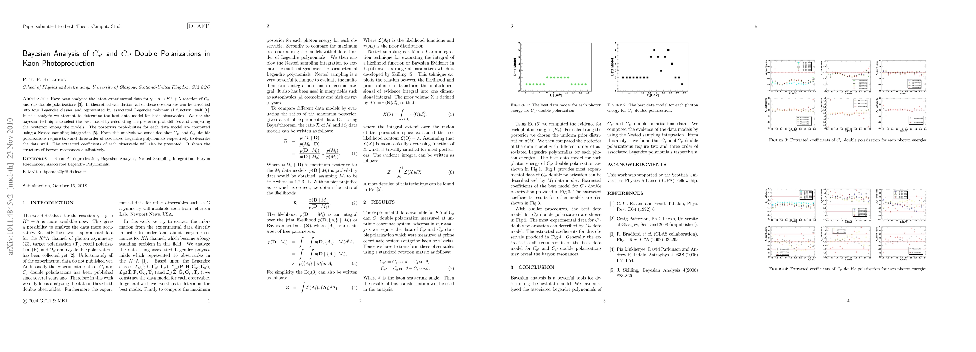 Researchers used Bayesian analysis to study kaon photoproduction data, finding that $C_{x'}$ requires 2nd order Legendre polynomials and $C_{z'}$ requires 3rd order.