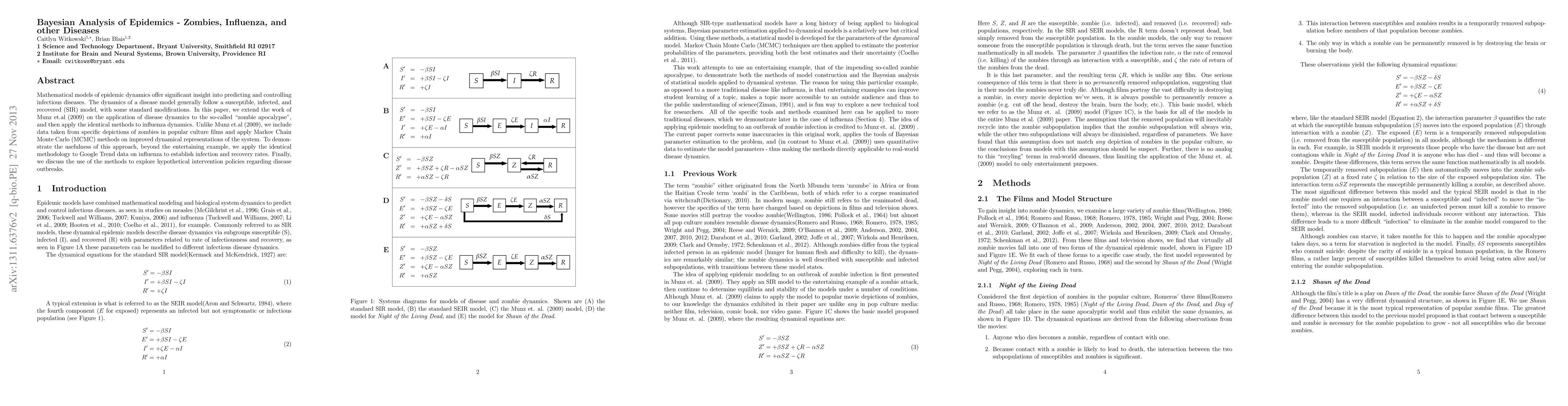 This paper extends Bayesian analysis to epidemic models, initially applied to "zombie apocalypse" scenarios and then to influenza dynamics, using improved dynamical representations and MCMC methods. It demonstrates the methodology's utility through Google Trend data analysis and discusses potential intervention policies for disease outbreaks.