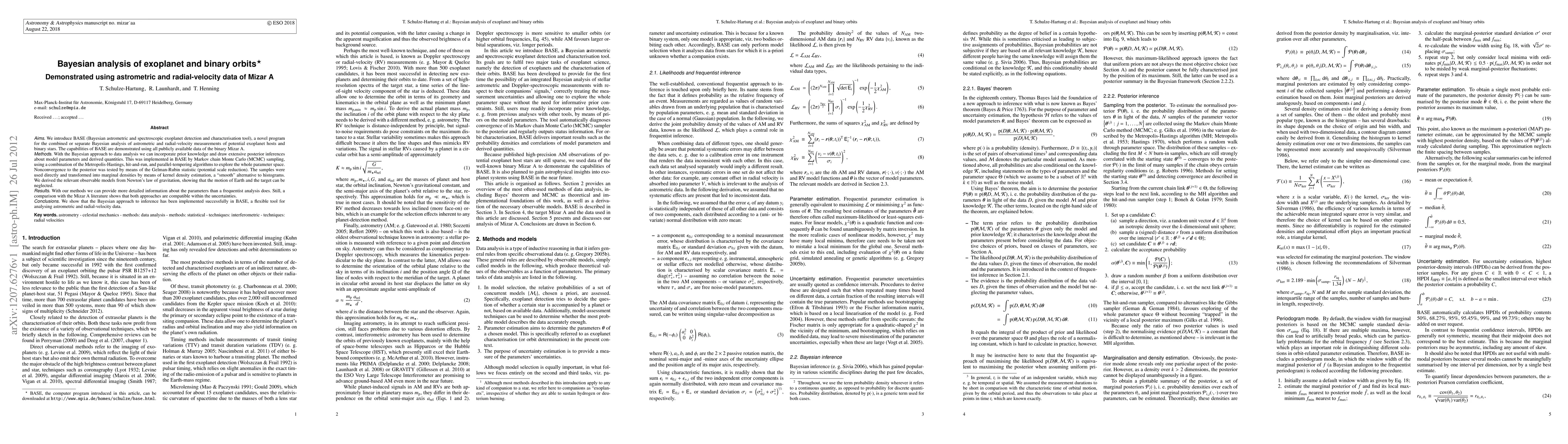 This paper presents BASE, a new tool for Bayesian analysis of exoplanet and binary star orbits using astrometric and radial-velocity data, and demonstrates its capabilities with publicly available data from the binary Mizar A.
