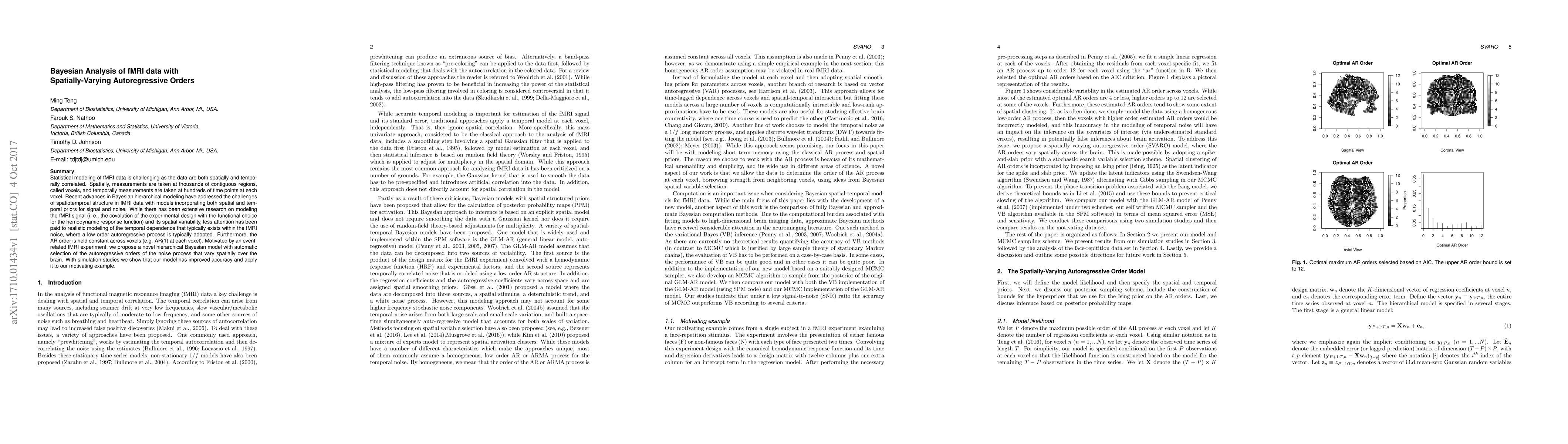 This paper proposes a novel Bayesian hierarchical model for fMRI data that allows spatially-varying autoregressive orders to better capture the temporal noise structure. The model demonstrates improved accuracy over traditional methods in both simulations and an event-related fMRI experiment.