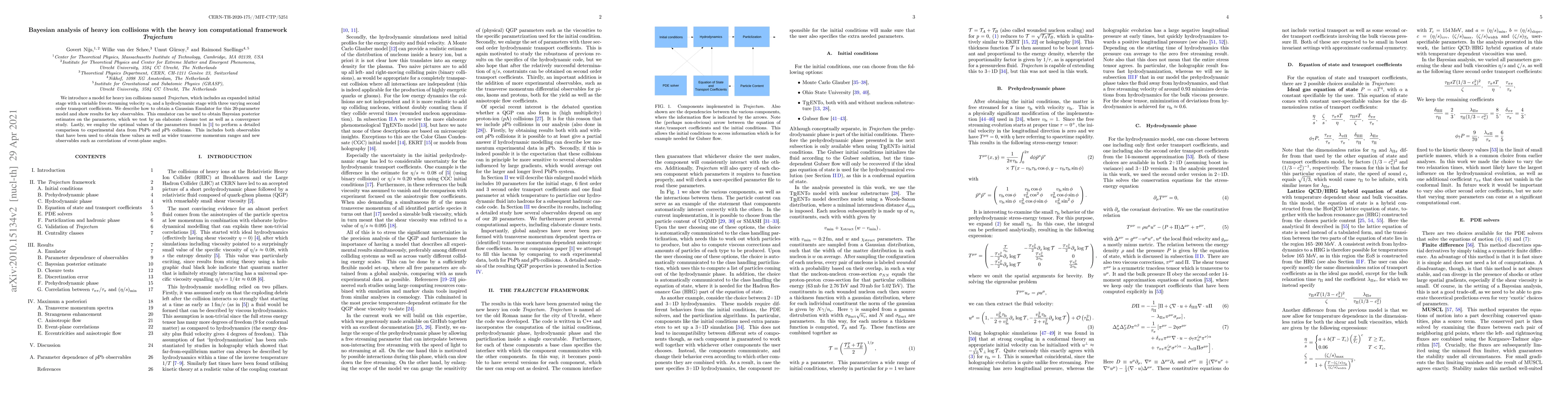 We introduce a model for heavy ion collisions named Trajectum, which includes an expanded initial stage with a variable free streaming velocity $v_{\rm fs}$ and a hydrodynamic stage with three varying second order transport coefficients. We describe how to obtain a Gaussian Emulator for this 20-parameter model and show results for key observables. This emulator can be used to obtain Bayesian posterior estimates on the parameters, which we test by an elaborate closure test as well as a convergence study. Lastly, we employ the optimal values of the parameters found in [1] to perform a detailed comparison to experimental data from PbPb and $p$Pb collisions. This includes both observables that have been used to obtain these values as well as wider transverse momentum ranges and new observables such as correlations of event-plane angles.