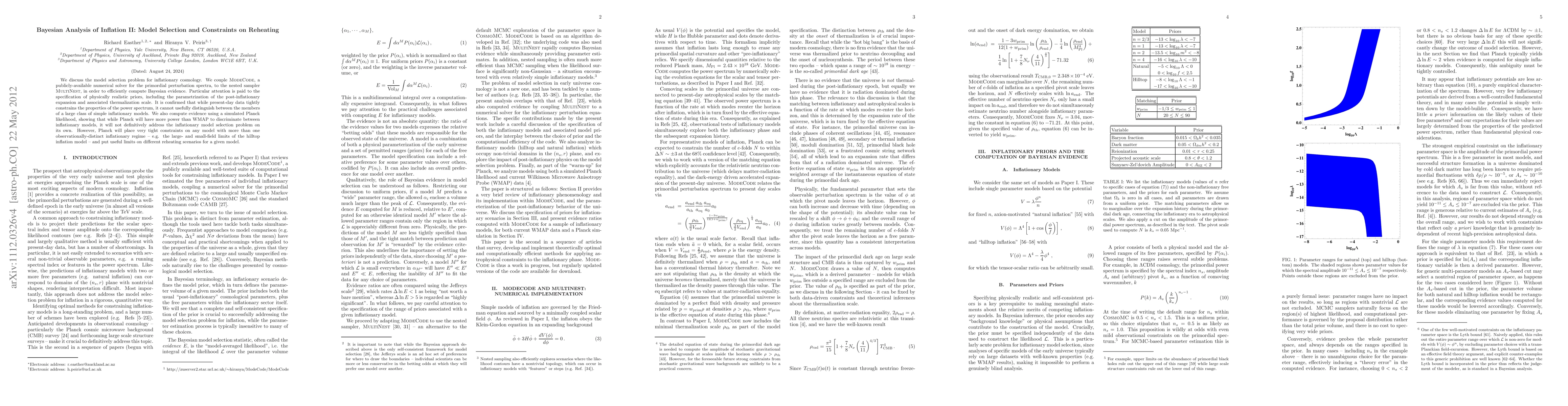 Researchers used Bayesian analysis to study inflationary cosmology, finding that current data cannot distinguish between simple models but will place tight constraints on models with multiple regimes. Planck data will be more powerful than WMAP in distinguishing between models.