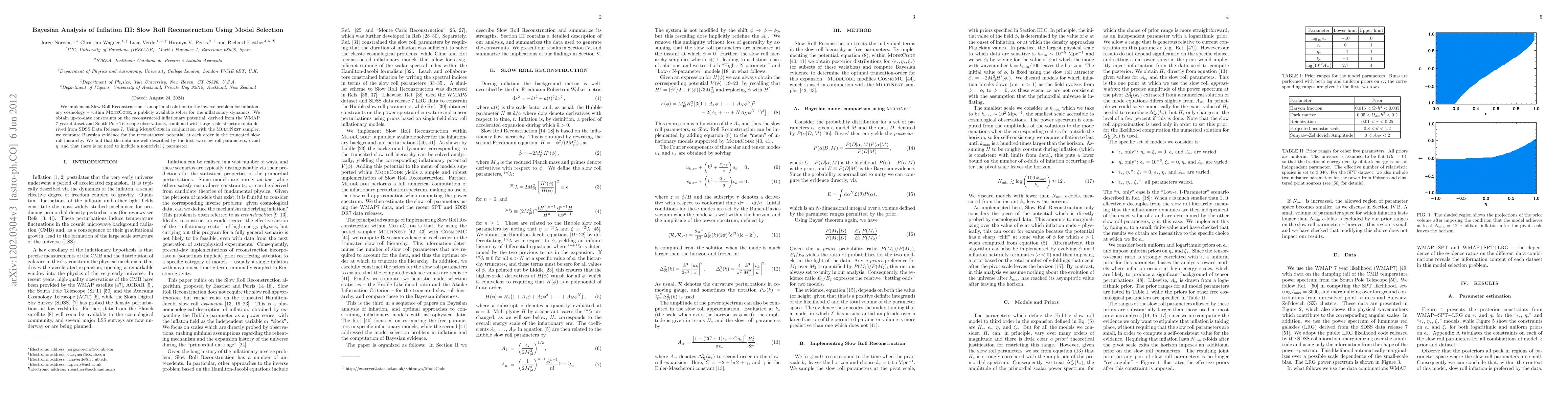 We implement Slow Roll Reconstruction -- an optimal solution to the inverse problem for inflationary cosmology -- within ModeCode, a publicly available solver for the inflationary dynamics. We obtain up-to-date constraints on the reconstructed inflationary potential, derived from the WMAP 7-year dataset and South Pole Telescope observations, combined with large scale structure data derived from SDSS Data Release 7. Using ModeCode in conjunction with the MultiNest sampler, we compute Bayesian evidence for the reconstructed potential at each order in the truncated slow roll hierarchy. We find that the data are well-described by the first two slow roll parameters, \epsilon and \eta, and that there is no need to include a nontrivial \xi parameter.