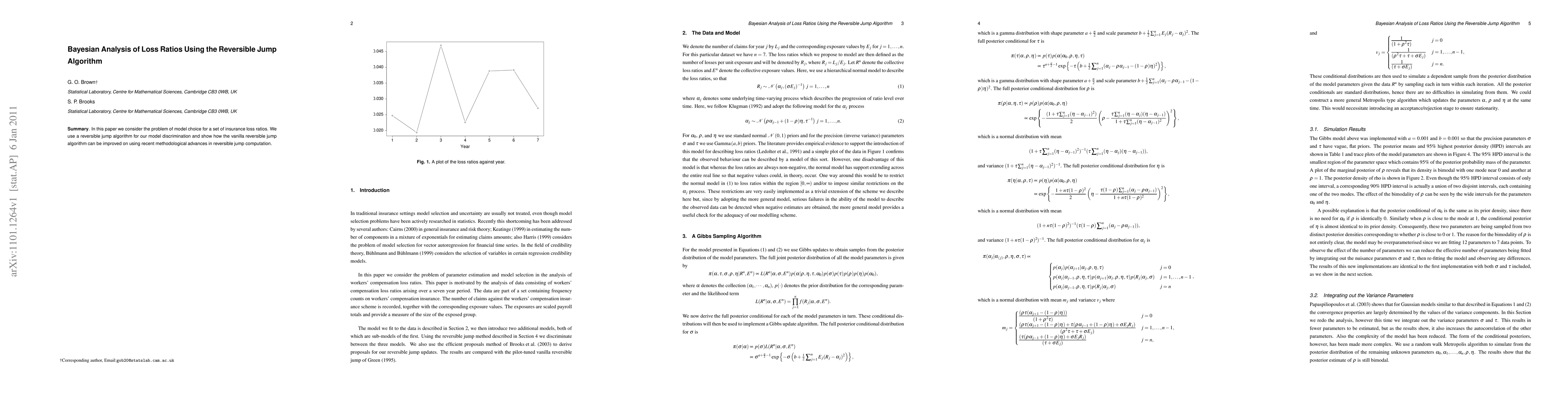 In this paper we consider the problem of model choice for a set of insurance loss ratios. We use a reversible jump algorithm for our model discrimination and show how the vanilla reversible jump algorithm can be improved on using recent methodological advances in reversible jump computation.
