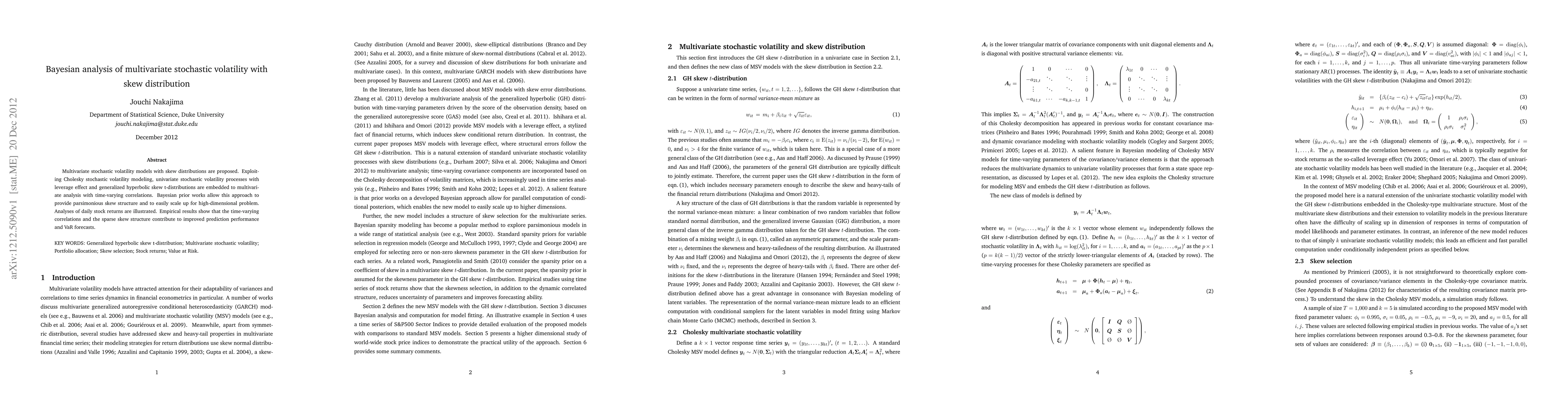 This paper proposes a Bayesian multivariate stochastic volatility model incorporating skew distributions, leveraging Cholesky modeling and generalized hyperbolic skew t-distributions. The approach demonstrates improved prediction and VaR forecasts for daily stock returns through its parsimonious skew structure and scalable framework.