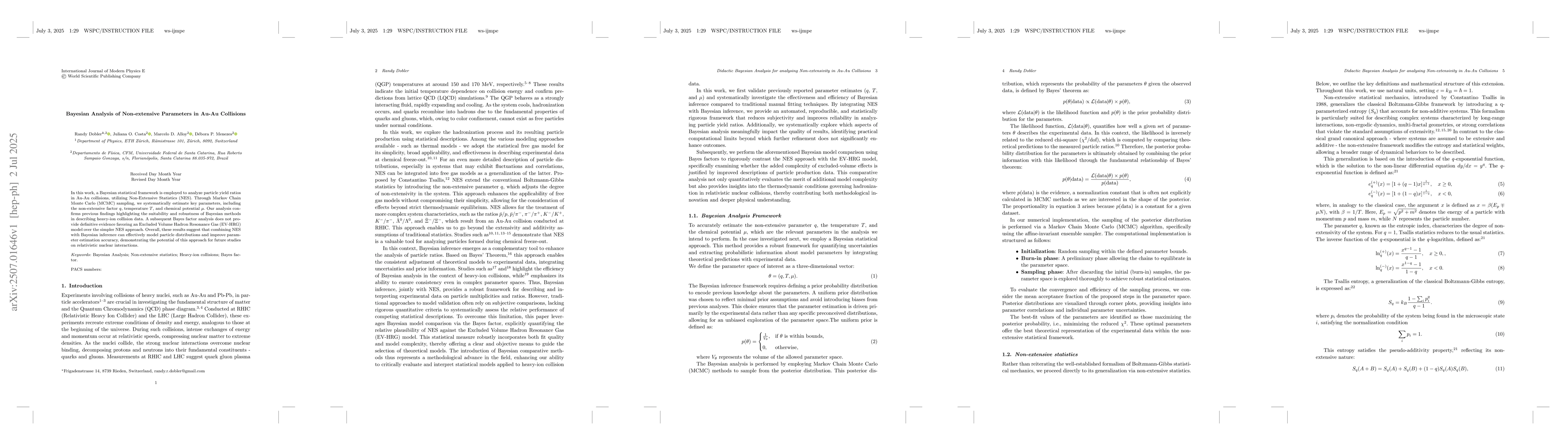 In this work, a Bayesian statistical framework is employed to analyze particle yield ratios in Au-Au collisions, utilizing Non-Extensive Statistics (NES). Through Markov Chain Monte Carlo (MCMC) sampling, we systematically estimate key parameters, including the non-extensive factor $q$, temperature $T$, and chemical potential $\mu$. Our analysis confirms previous findings highlighting the suitability and robustness of Bayesian methods in describing heavy-ion collision data. A subsequent Bayes factor analysis does not provide definitive evidence favoring an Excluded Volume Hadron Resonance Gas (EV-HRG) model over the simpler NES approach. Overall, these results suggest that combining NES with Bayesian inference can effectively model particle distributions and improve parameter estimation accuracy, demonstrating the potential of this approach for future studies on relativistic nuclear interactions.