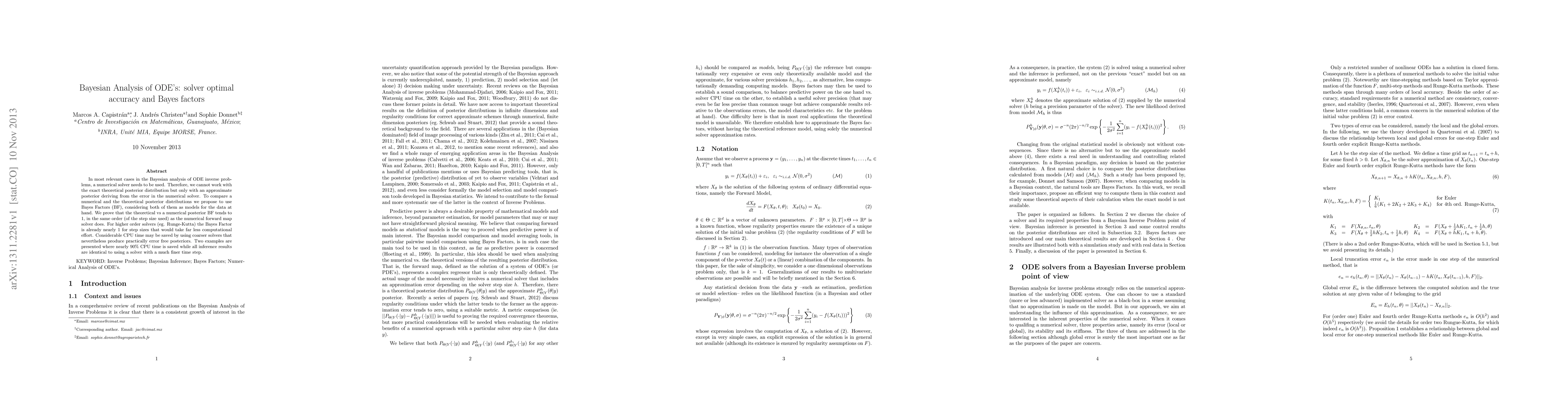 In most relevant cases in the Bayesian analysis of ODE inverse problems, a numerical solver needs to be used. Therefore, we cannot work with the exact theoretical posterior distribution but only with an approximate posterior deriving from the error in the numerical solver. To compare a numerical and the theoretical posterior distributions we propose to use Bayes Factors (BF), considering both of them as models for the data at hand. We prove that the theoretical vs a numerical posterior BF tends to 1, in the same order (of the step size used) as the numerical forward map solver does. For higher order solvers (eg. Runge-Kutta) the Bayes Factor is already nearly 1 for step sizes that would take far less computational effort. Considerable CPU time may be saved by using coarser solvers that nevertheless produce practically error free posteriors. Two examples are presented where nearly 90% CPU time is saved while all inference results are identical to using a solver with a much finer time step.