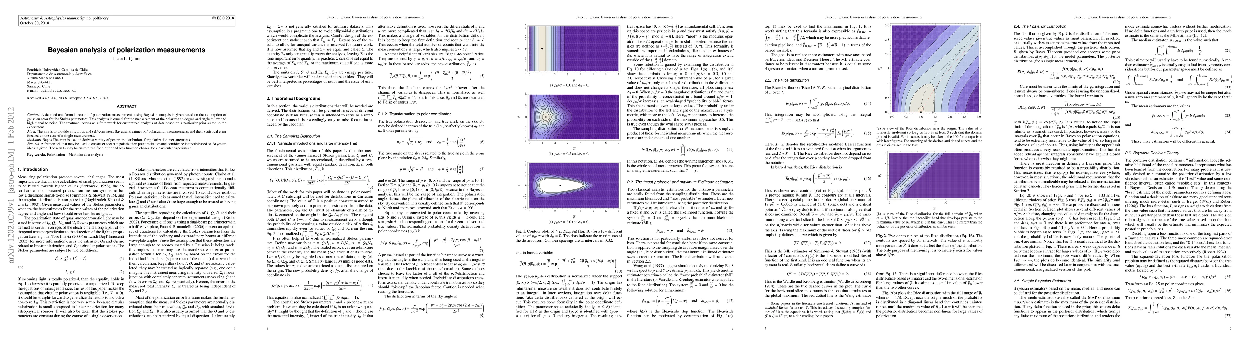 This paper presents a Bayesian framework for analyzing polarization measurements, assuming Gaussian errors in the Stokes parameters, to accurately determine polarization degree and angle even at low signal-to-noise ratios. The method is adaptable to various experimental priors for tailored data analysis.