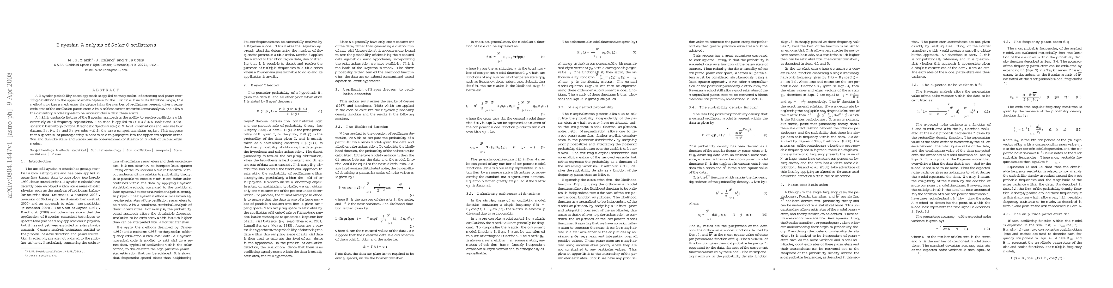 This paper employs a Bayesian statistical method to detect and parameterize solar oscillations in the upper solar atmosphere, achieving precise estimates and error analysis. The approach successfully resolves multiple p-modes in SOHO/CDS observations, suggesting the propagation of photospheric p-modes into the upper atmosphere and providing constraints for umbral eigen mode models.