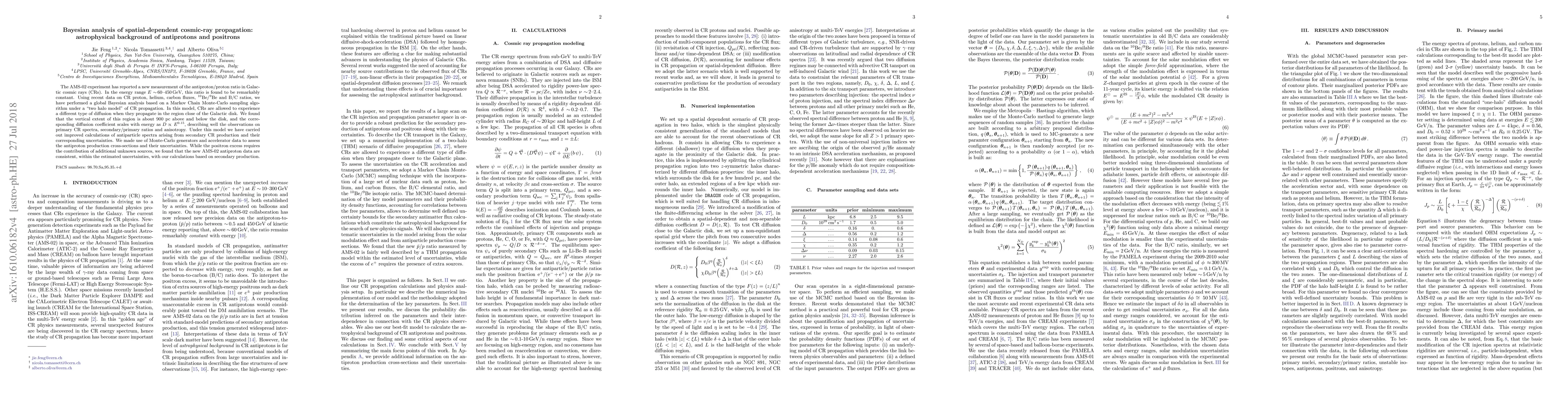Researchers used Bayesian analysis to study cosmic-ray propagation and found a 'two halo model' that explains the constant antiproton/proton ratio in high-energy particles. The model suggests a new region of particle diffusion near the Galactic disk with an uncertainty range consistent with recent data from the AMS-02 experiment.