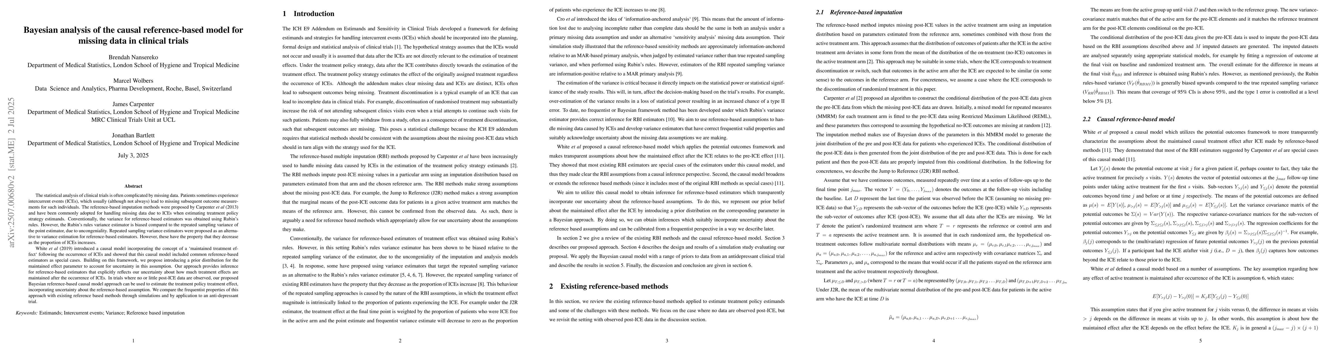 The statistical analysis of clinical trials is often complicated by missing data. Patients sometimes experience intercurrent events (ICEs), which usually (although not always) lead to missing subsequent outcome measurements for such individuals. The reference-based imputation methods were proposed by Carpenter et al. (2013) and have been commonly adopted for handling missing data due to ICEs when estimating treatment policy strategy estimands. Conventionally, the variance for reference-based estimators was obtained using Rubin's rules. However, Rubin's rules variance estimator is biased compared to the repeated sampling variance of the point estimator, due to uncongeniality. Repeated sampling variance estimators were proposed as an alternative to variance estimation for reference-based estimators. However, these have the property that they decrease as the proportion of ICEs increases. White et al. (2019) introduced a causal model incorporating the concept of a 'maintained treatment effect' following the occurrence of ICEs and showed that this causal model included common reference-based estimators as special cases. Building on this framework, we propose introducing a prior distribution for the maintained effect parameter to account for uncertainty in this assumption. Our approach provides inference for reference-based estimators that explicitly reflects our uncertainty about how much treatment effects are maintained after the occurrence of ICEs. In trials where no or little post-ICE data are observed, our proposed Bayesian reference-based causal model approach can be used to estimate the treatment policy treatment effect, incorporating uncertainty about the reference-based assumption. We compare the frequentist properties of this approach with existing reference-based methods through simulations and by application to an antidepressant trial.