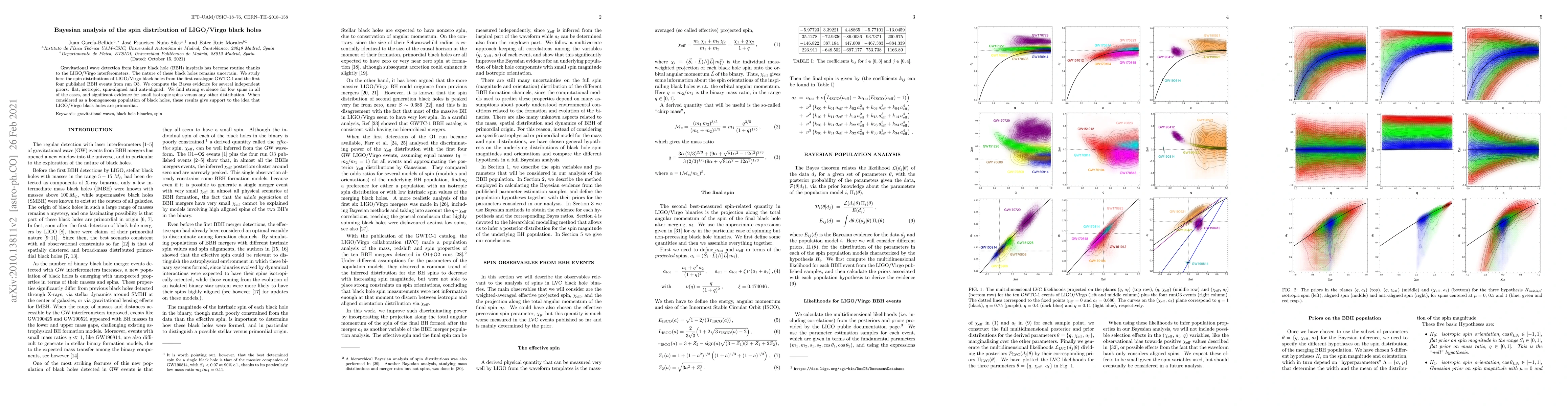 This paper uses Bayesian analysis to investigate the spin distributions of black holes detected by LIGO/Virgo from the first catalogue GWTC-1 and four O3 events. The study finds strong evidence for low spins and significant evidence favoring small isotropic spins, supporting the notion that these black holes may be primordial.