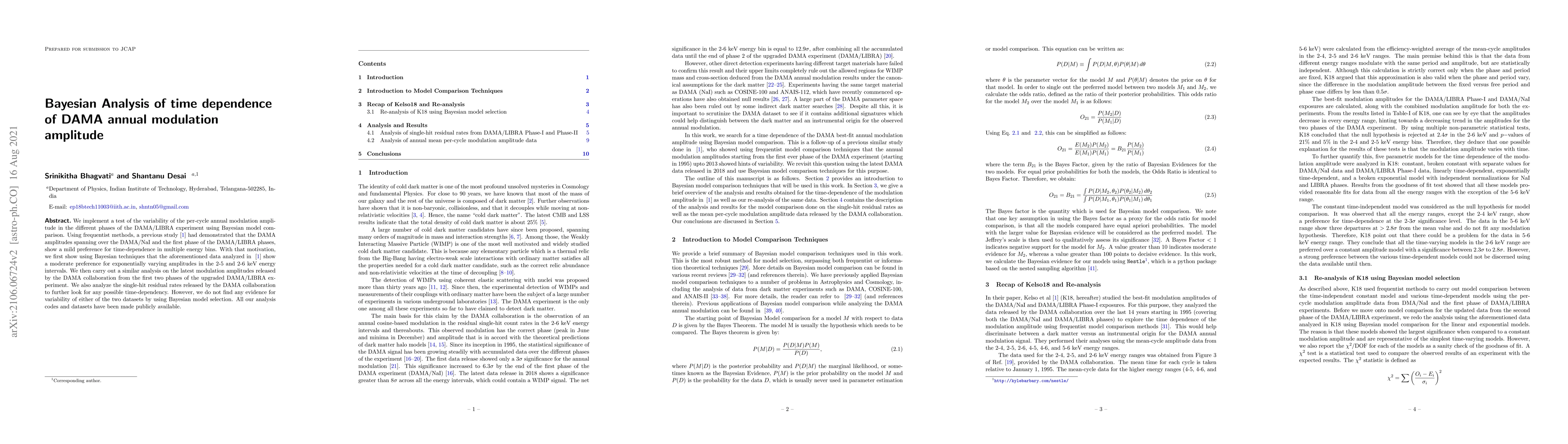 A study uses Bayesian analysis to investigate time dependence in DAMA annual modulation amplitude data from two phases of the DAMA/LIBRA experiment; no evidence for variability is found.