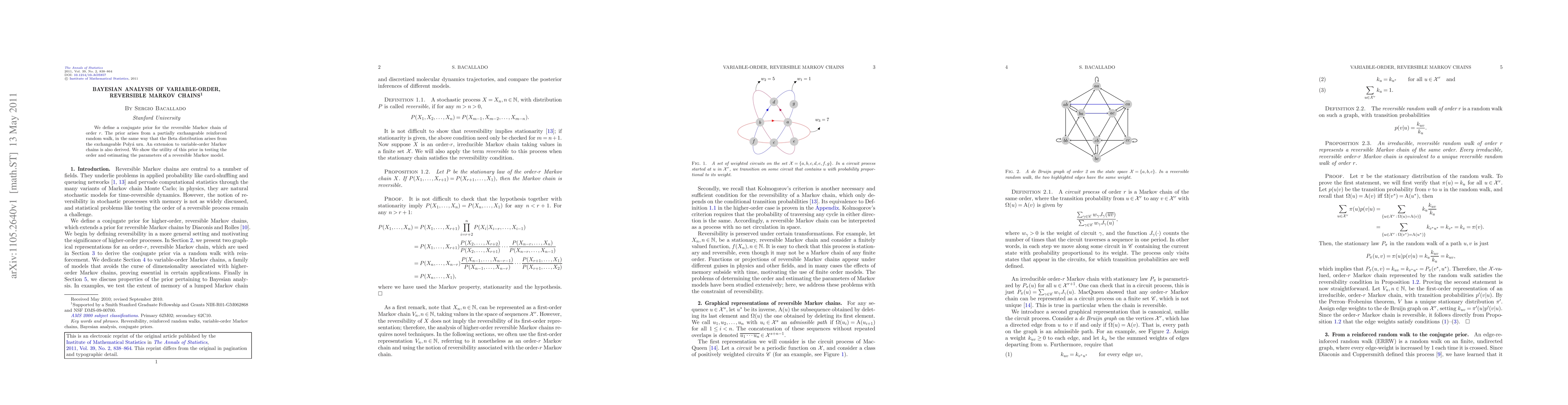 This paper introduces a conjugate prior for reversible Markov chains of order $r$, derived from a reinforced random walk, and extends it to variable-order chains. It demonstrates the prior's effectiveness in testing chain order and estimating model parameters.