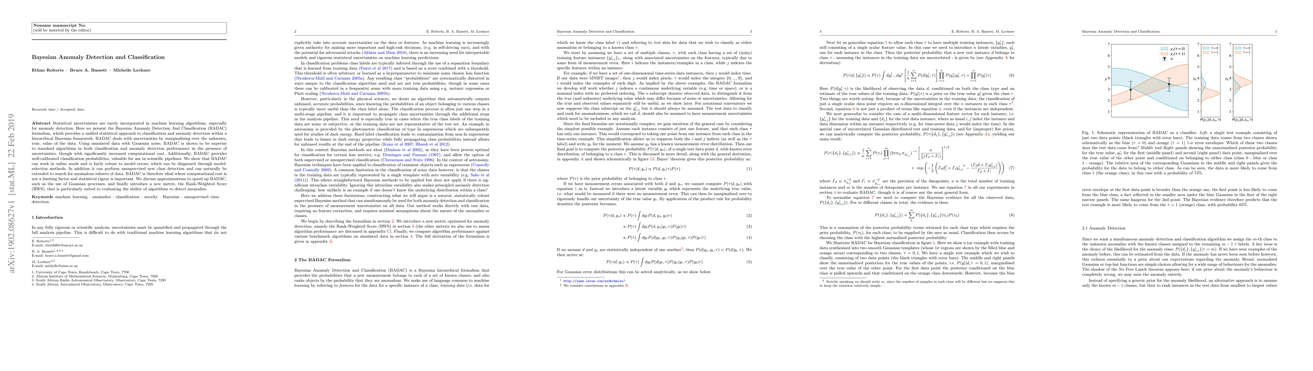 The paper introduces BADAC, a Bayesian approach for anomaly detection and classification that incorporates statistical uncertainties, demonstrating superior performance over standard algorithms, especially in the presence of uncertainties. It also presents the Rank-Weighted Score (RWS) metric for evaluating anomaly detection capabilities and discusses computational approximations to enhance efficiency.