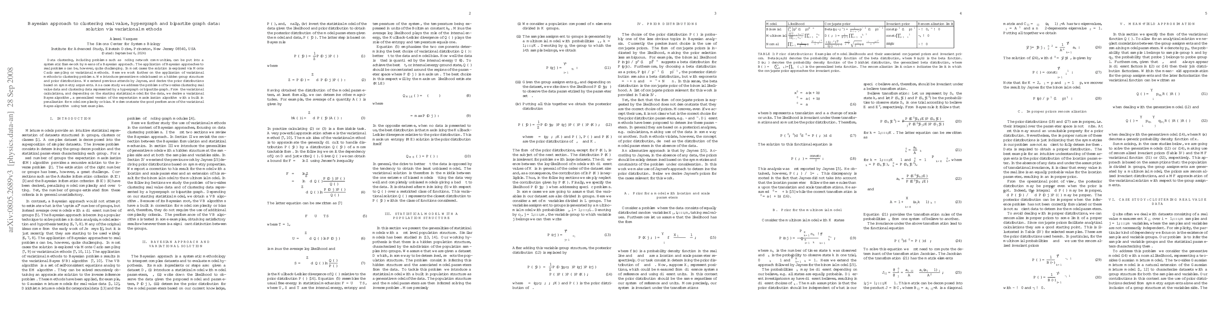 This paper proposes a Bayesian approach to clustering real value, categorical, and network data using variational methods. It introduces generative models based on hidden group structures and derives prior distributions via symmetry arguments, demonstrating the effectiveness of the variational Bayes algorithm through test examples.