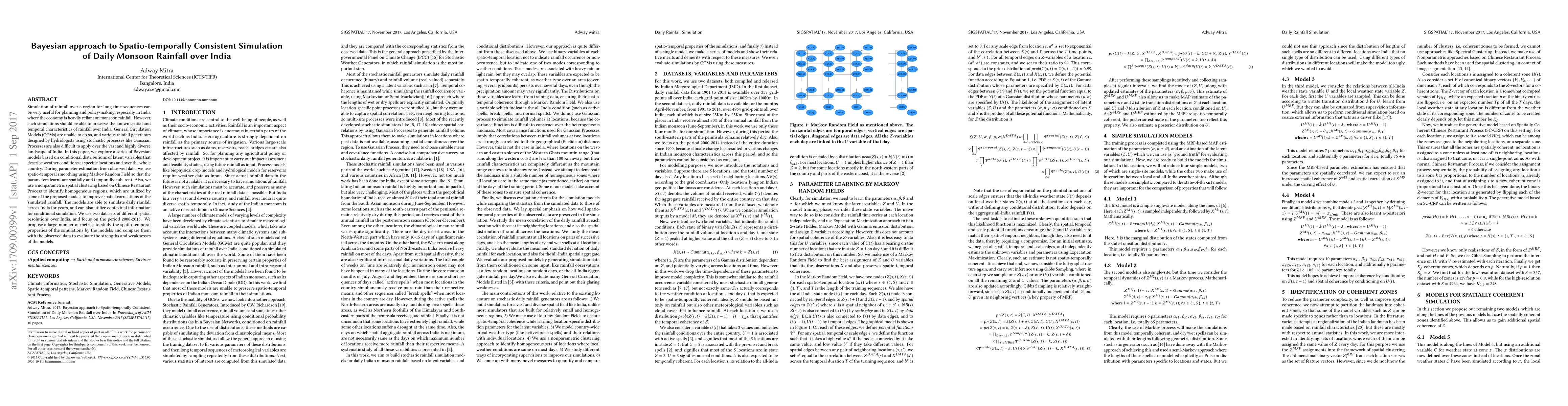 This paper proposes Bayesian models for simulating daily monsoon rainfall over India, ensuring spatio-temporal consistency. The models incorporate spatial and temporal smoothing, and use nonparametric clustering to identify homogeneous regions, achieving coherent simulations over long time-sequences.