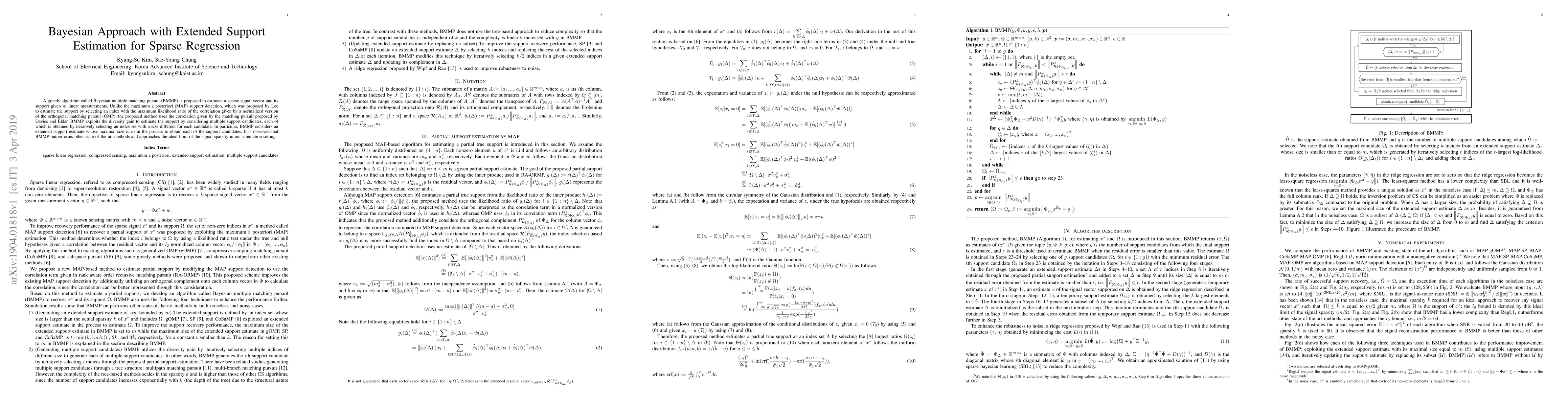 A greedy algorithm called Bayesian multiple matching pursuit (BMMP) is proposed to estimate a sparse signal vector and its support given $m$ linear measurements. Unlike the maximum a posteriori (MAP) support detection, which was proposed by Lee to estimate the support by selecting an index with the maximum likelihood ratio of the correlation given by a normalized version of the orthogonal matching pursuit (OMP), the proposed method uses the correlation given by the matching pursuit proposed by Davies and Eldar. BMMP exploits the diversity gain to estimate the support by considering multiple support candidates, each of which is obtained by iteratively selecting an index set with a size different for each candidate. In particular, BMMP considers an extended support estimate whose maximal size is $m$ in the process to obtain each of the support candidates. It is observed that BMMP outperforms other state-of-the-art methods and approaches the ideal limit of the signal sparsity in our simulation setting.