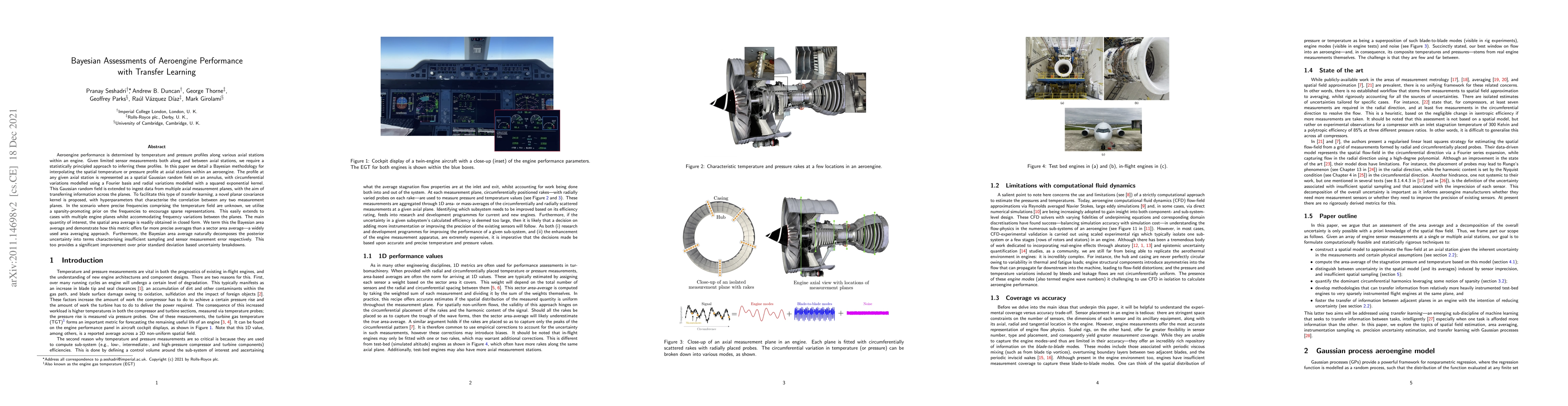 Aeroengine performance is determined by temperature and pressure profiles along various axial stations within an engine. Given limited sensor measurements both along and between axial stations, we require a statistically principled approach to inferring these profiles. In this paper we detail a Bayesian methodology for interpolating the spatial temperature or pressure profile at axial stations within an aeroengine. The profile at any given axial station is represented as a spatial Gaussian random field on an annulus, with circumferential variations modelled using a Fourier basis and radial variations modelled with a squared exponential kernel. This Gaussian random field is extended to ingest data from multiple axial measurement planes, with the aim of transferring information across the planes. To facilitate this type of transfer learning, a novel planar covariance kernel is proposed, with hyperparameters that characterise the correlation between any two measurement planes. In the scenario where precise frequencies comprising the temperature field are unknown, we utilise a sparsity-promoting prior on the frequencies to encourage sparse representations. This easily extends to cases with multiple engine planes whilst accommodating frequency variations between the planes. The main quantity of interest, the spatial area average is readily obtained in closed form. We term this the Bayesian area average and demonstrate how this metric offers far more precise averages than a sector area average -- a widely used area averaging approach. Furthermore, the Bayesian area average naturally decomposes the posterior uncertainty into terms characterising insufficient sampling and sensor measurement error respectively. This too provides a significant improvement over prior standard deviation based uncertainty breakdowns.