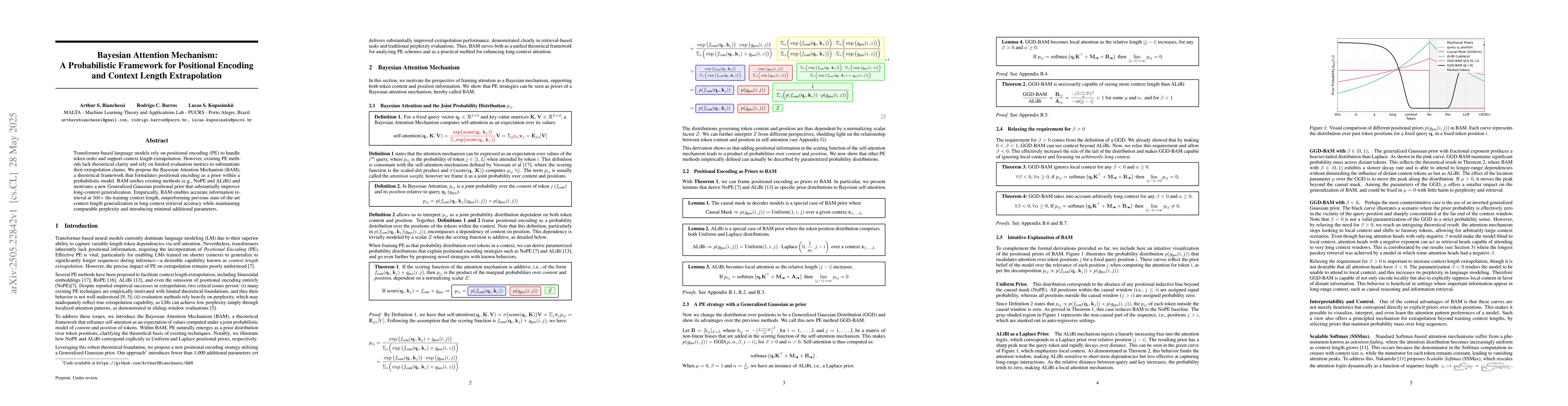 Researchers propose a new probabilistic framework called Bayesian Attention Mechanism (BAM) to improve context length extrapolation in transformer-based language models. BAM enables accurate information retrieval at 500x the training context length while maintaining comparable perplexity.