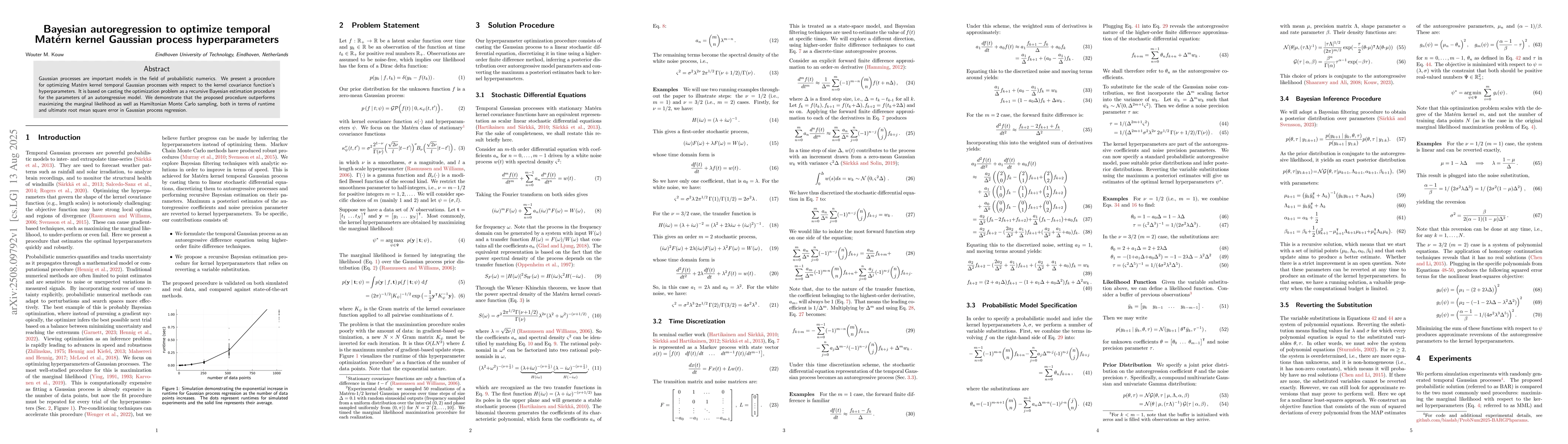 Gaussian processes are important models in the field of probabilistic numerics. We present a procedure for optimizing Mat\'ern kernel temporal Gaussian processes with respect to the kernel covariance function's hyperparameters. It is based on casting the optimization problem as a recursive Bayesian estimation procedure for the parameters of an autoregressive model. We demonstrate that the proposed procedure outperforms maximizing the marginal likelihood as well as Hamiltonian Monte Carlo sampling, both in terms of runtime and ultimate root mean square error in Gaussian process regression.