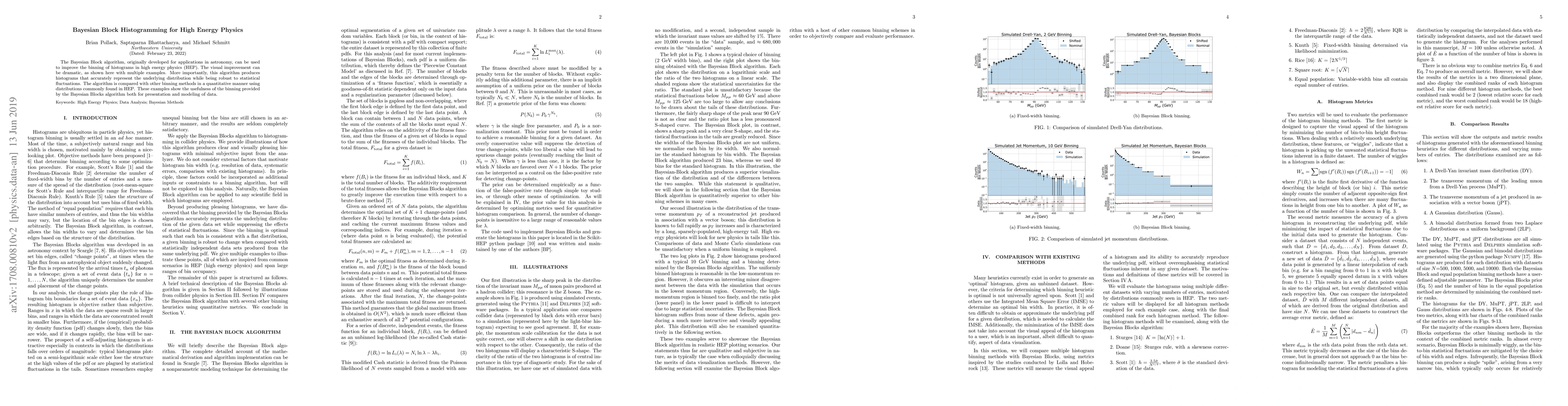 The Bayesian Block algorithm, originally developed for applications in astronomy, can be used to improve the binning of histograms in high energy physics. The visual improvement can be dramatic, as shown here with two simple examples. More importantly, this algorithm and the histogram is produces is a non-parametric density estimate, providing a description of background distributions that does not suffer from the arbitrariness of ad hoc analytical functions. The statistical power of an hypothesis test based on Bayesian Blocks is nearly as good as that obtained by fitting analytical functions. Two examples are provided: a narrow peak on a smoothly-falling background, and an excess in the tail of a background that falls rapidly over several orders of magnitude. These examples show the usefulness of the binning provided by the Bayesian Blocks algorithm both for presentation of data and when searching for new physics.