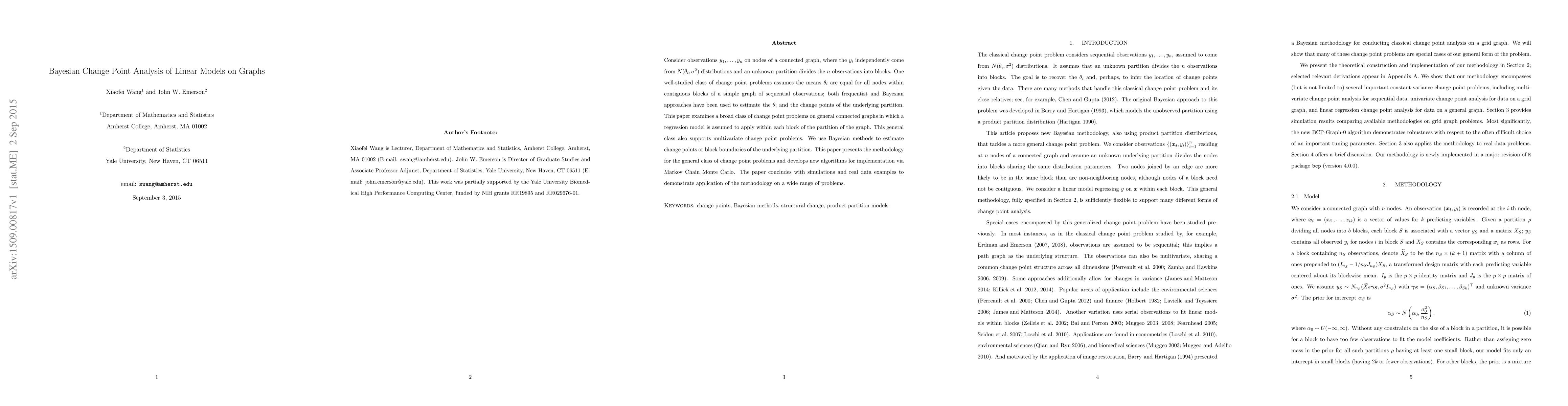 This paper develops Bayesian methods and Markov Chain Monte Carlo algorithms for detecting change points in linear models on connected graphs, supporting both univariate and multivariate data. It demonstrates the methodology through simulations and real data examples.