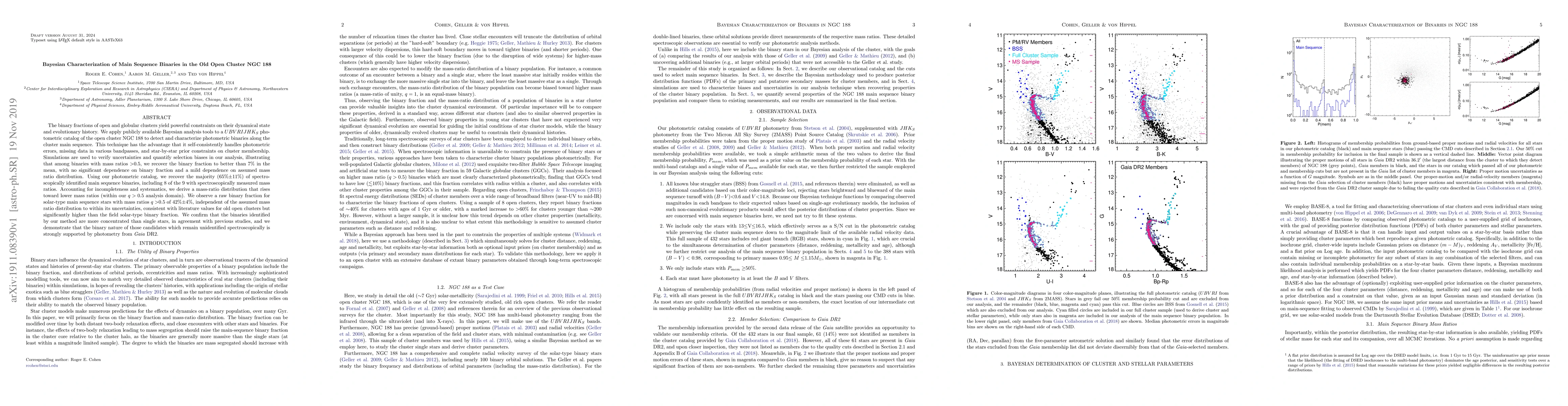 This paper uses Bayesian analysis to characterize main sequence binaries in the old open cluster NGC 188, finding a binary fraction of 42%±4% for solar-type stars with mass ratios >0.5. The method effectively identifies binaries, with 65%±11% of spectroscopically confirmed binaries detected, supporting the binaries' higher concentration compared to single stars.