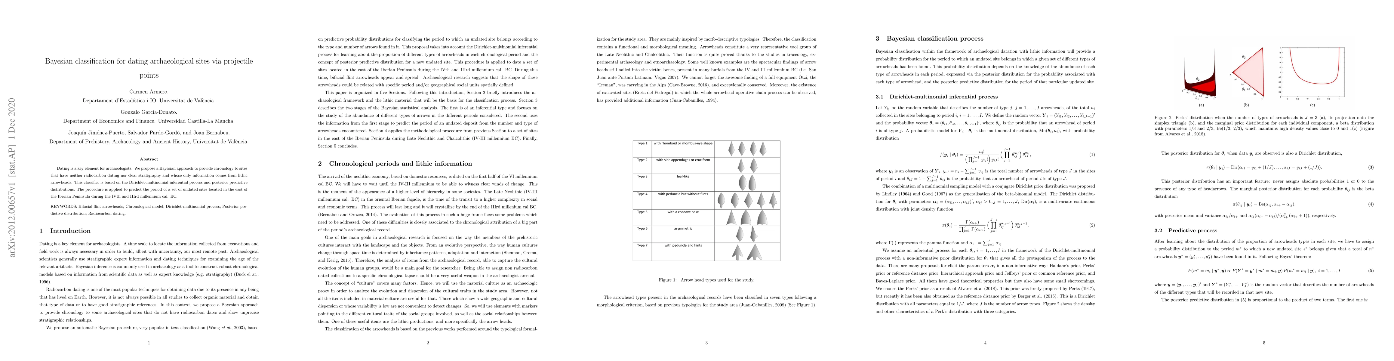 Dating is a key element for archaeologists. We propose a Bayesian approach to provide chronology to sites that have neither radiocarbon dating nor clear stratigraphy and whose only information comes from lithic arrowheads. This classifier is based on the Dirichlet-multinomial inferential process and posterior predictive distributions. The procedure is applied to predict the period of a set of undated sites located in the east of the Iberian Peninsula during the IVth and IIIrd millennium cal. BC.