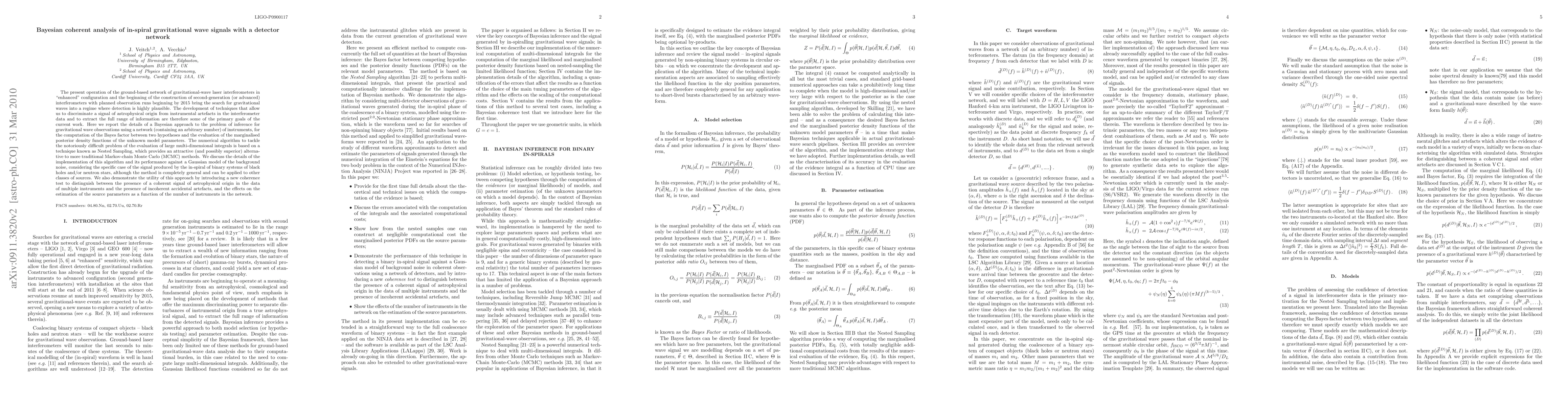 The present operation of the ground-based network of gravitational-wave laser interferometers in "enhanced" configuration brings the search for gravitational waves into a regime where detection is highly plausible. The development of techniques that allow us to discriminate a signal of astrophysical origin from instrumental artefacts in the interferometer data and to extract the full range of information are some of the primary goals of the current work. Here we report the details of a Bayesian approach to the problem of inference for gravitational wave observations using a network of instruments, for the computation of the Bayes factor between two hypotheses and the evaluation of the marginalised posterior density functions of the unknown model parameters. The numerical algorithm to tackle the notoriously difficult problem of the evaluation of large multi-dimensional integrals is based on a technique known as Nested Sampling, which provides an attractive alternative to more traditional Markov-chain Monte Carlo (MCMC) methods. We discuss the details of the implementation of this algorithm and its performance against a Gaussian model of the background noise, considering the specific case of the signal produced by the in-spiral of binary systems of black holes and/or neutron stars, although the method is completely general and can be applied to other classes of sources. We also demonstrate the utility of this approach by introducing a new coherence test to distinguish between the presence of a coherent signal of astrophysical origin in the data of multiple instruments and the presence of incoherent accidental artefacts, and the effects on the estimation of the source parameters as a function of the number of instruments in the network.