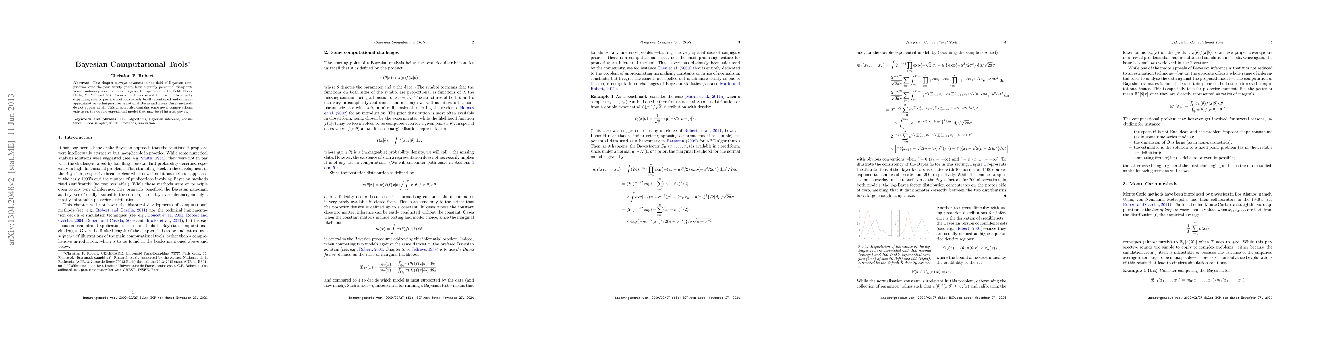 This chapter surveys advances in Bayesian computation over 20 years, focusing on missing data and novel computational entries. It highlights key findings and implications for the field.
