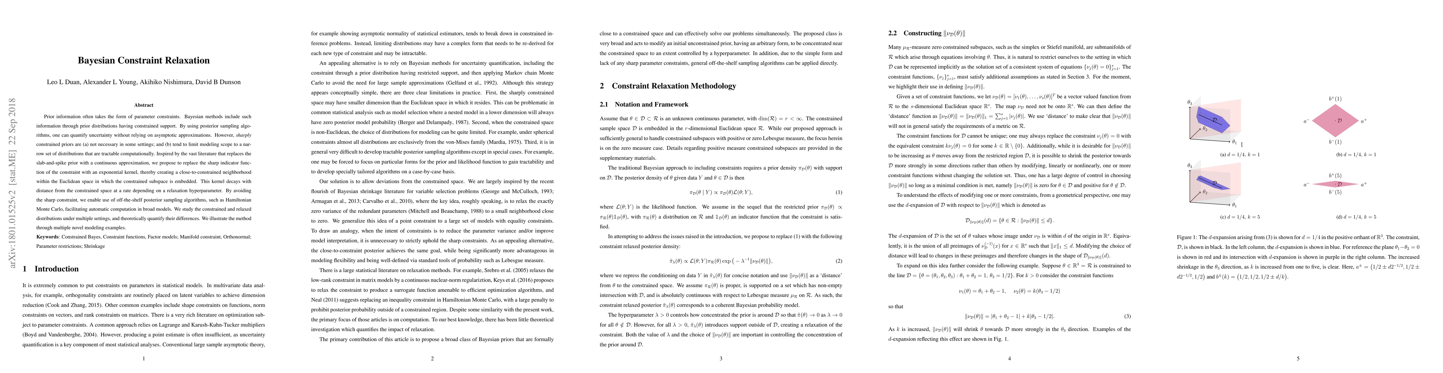 This paper proposes a Bayesian constraint relaxation technique using an exponential kernel to replace sharp constraints, allowing for flexible modeling and automatic computation with posterior sampling algorithms like Hamiltonian Monte Carlo. The method is theoretically analyzed and demonstrated through various practical modeling examples.