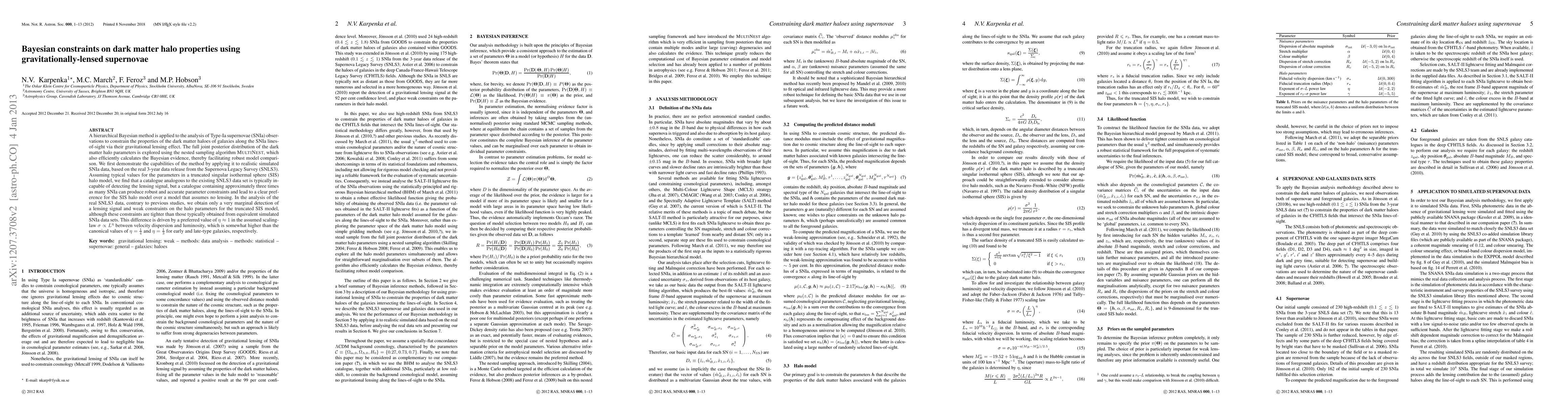 This paper uses a hierarchical Bayesian method and nested sampling to analyze Type-Ia supernovae (SNIa) observations for constraining dark matter halo properties via gravitational lensing. The study finds that while a larger SNIa catalogue can robustly constrain halo parameters, the real SNLS3 data yields only marginal lensing detection and weak constraints, differing from simulations due to a higher scaling factor in the velocity dispersion-luminosity relationship.