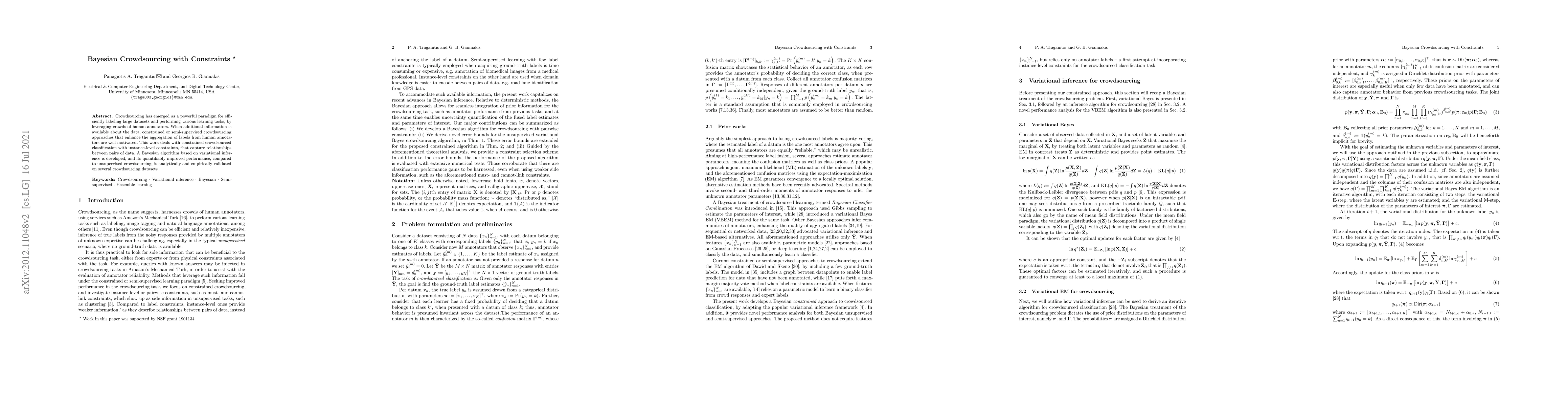 This paper develops Bayesian algorithms for semi-supervised crowdsourcing under label and instance-level constraints, showing improved performance over unsupervised methods through both analytical and empirical validation on various datasets.