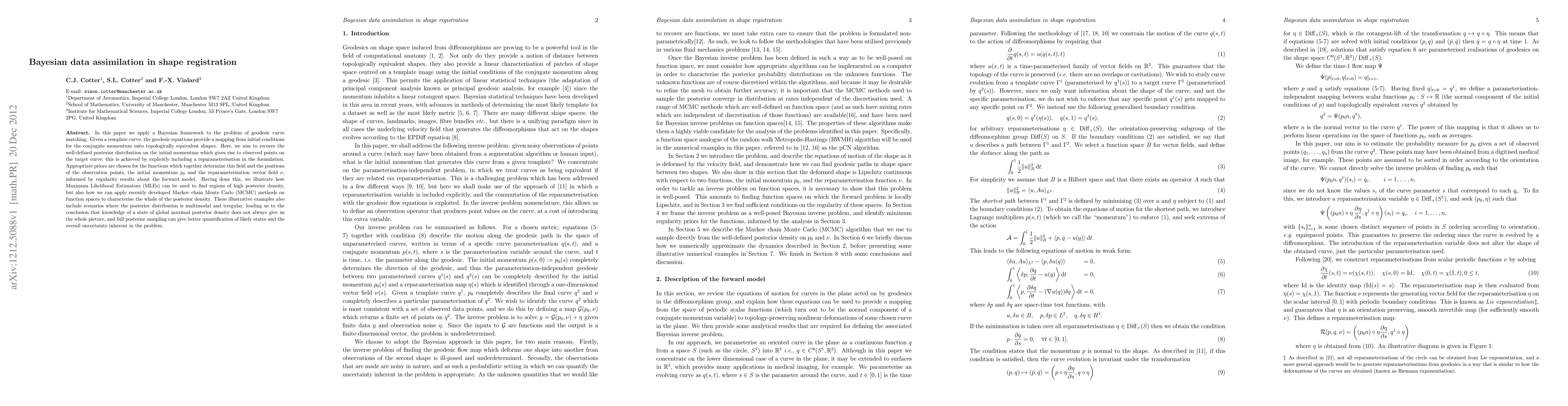 In this paper we apply a Bayesian framework to the problem of geodesic curve matching. Given a template curve, the geodesic equations provide a mapping from initial conditions for the conjugate momentum onto topologically equivalent shapes. Here, we aim to recover the well-defined posterior distribution on the initial momentum which gives rise to observed points on the target curve; this is achieved by explicitly including a reparameterisation in the formulation. Appropriate priors are chosen for the functions which together determine this field and the positions of the observation points, the initial momentum $p_0$ and the reparameterisation vector field $\nu$, informed by regularity results about the forward model. Having done this, we illustrate how Maximum Likelihood Estimators (MLEs) can be used to find regions of high posterior density, but also how we can apply recently developed \SLC{Markov chain Monte Carlo (MCMC)} methods on function spaces to characterise the whole of the posterior density. These illustrative examples also include scenarios where the posterior distribution is multimodal and irregular, leading us to the conclusion that knowledge of a state of global maximal posterior density does not always give us the whole picture, and full posterior sampling can give better quantification of likely states and the overall uncertainty inherent in the problem.