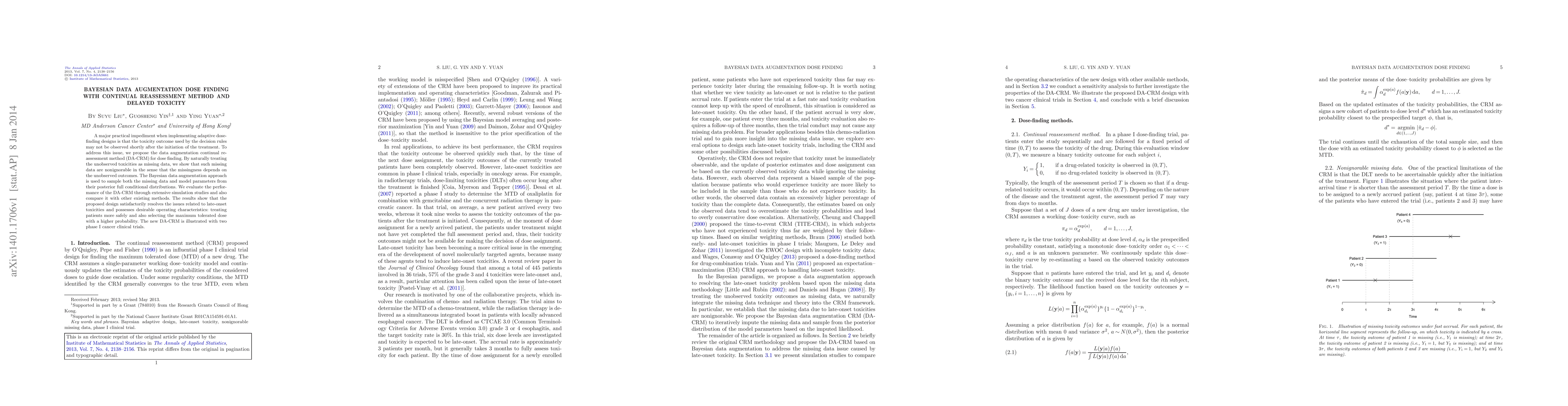 The paper proposes the data augmentation continual reassessment method (DA-CRM) to address the challenge of delayed toxicity in adaptive dose-finding designs. The DA-CRM treats unobserved toxicities as missing data, employing Bayesian data augmentation to sample both missing data and model parameters, ultimately improving patient safety and dose selection.