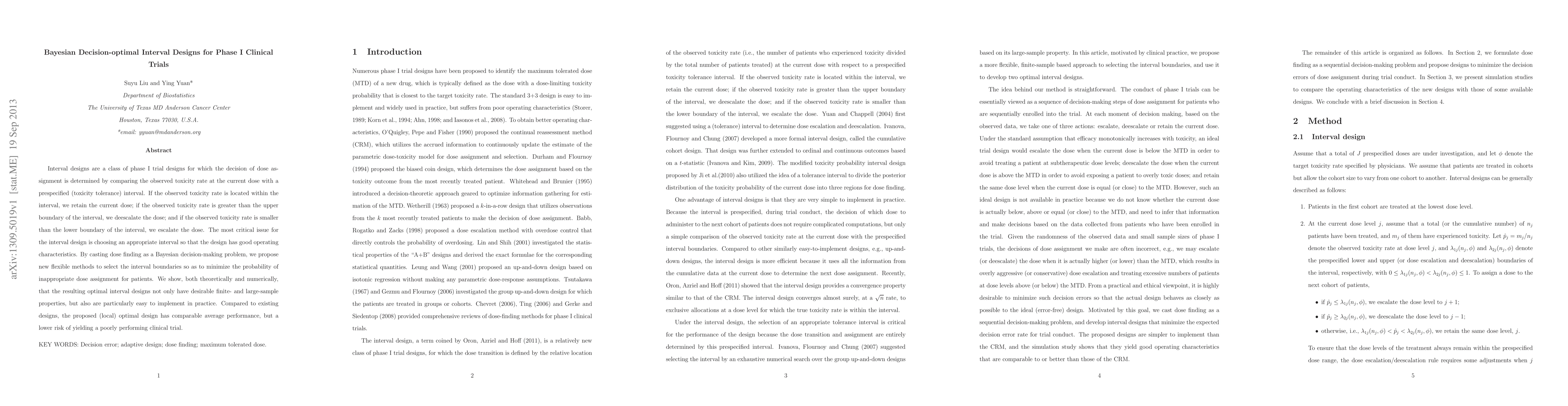 This paper proposes Bayesian decision-optimal interval designs for phase I clinical trials, aiming to minimize the risk of inappropriate dose assignment. The new method optimizes interval boundaries to balance dose escalation and deescalation, demonstrating improved practical implementation and reduced risk of poor trial performance compared to existing designs.