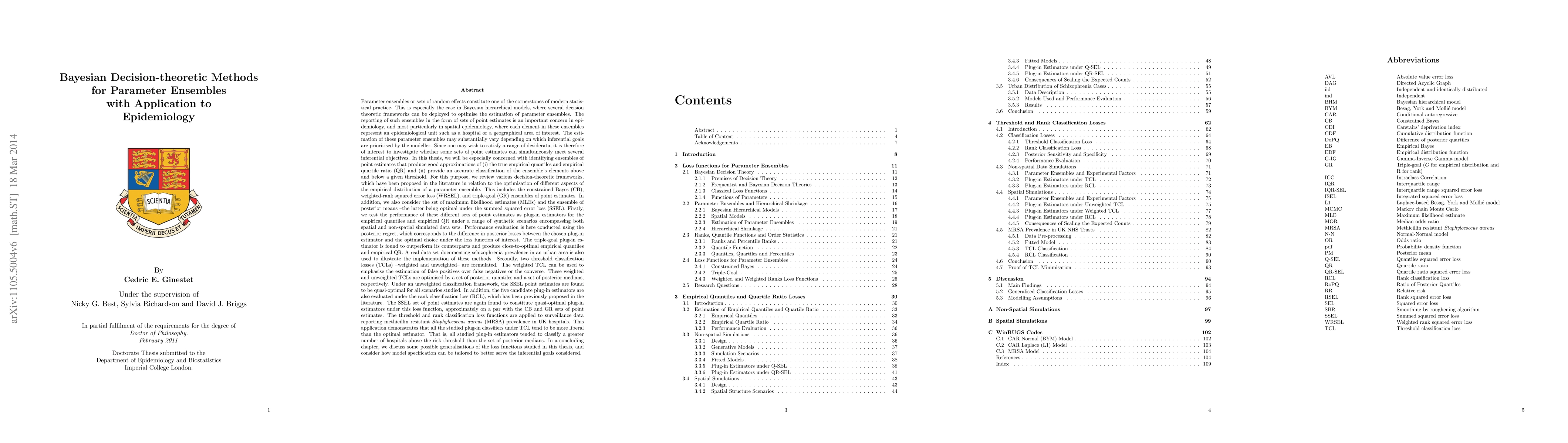 Parameter ensembles or sets of random effects constitute one of the cornerstones of modern statistical practice. This is especially the case in Bayesian hierarchical models, where several decision theoretic frameworks can be deployed. The estimation of these parameter ensembles may substantially vary depending on which inferential goals are prioritised by the modeller. Since one may wish to satisfy a range of desiderata, it is therefore of interest to investigate whether some sets of point estimates can simultaneously meet several inferential objectives. In this thesis, we will be especially concerned with identifying ensembles of point estimates that produce good approximations of (i) the true empirical quantiles and empirical quartile ratio (QR) and (ii) provide an accurate classification of the ensemble's elements above and below a given threshold. For this purpose, we review various decision-theoretic frameworks, which have been proposed in the literature in relation to the optimisation of different aspects of the empirical distribution of a parameter ensemble. This includes the constrained Bayes (CB), weighted-rank squared error loss (WRSEL), and triple-goal (GR) ensembles of point estimates. In addition, we also consider the set of maximum likelihood estimates (MLEs) and the ensemble of posterior means --the latter being optimal under the summed squared error loss (SSEL). Firstly, we test the performance of these different sets of point estimates as plug-in estimators for the empirical quantiles and empirical QR under a range of synthetic scenarios encompassing both spatial and non-spatial simulated data sets. Performance evaluation is here conducted using the posterior regret. Secondly, two threshold classification losses (TCLs) --weighted and unweighted-- are formulated and formally optimised. The performance of these decision-theoretic tools is also evaluated on real data sets.