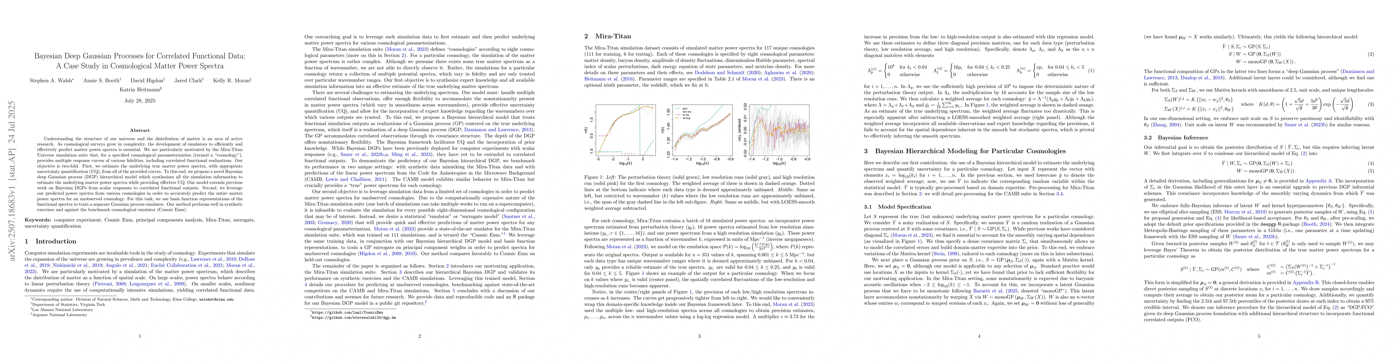 Understanding the structure of our universe and the distribution of matter is an area of active research. As cosmological surveys grow in complexity, the development of emulators to efficiently and effectively predict matter power spectra is essential. We are particularly motivated by the Mira-Titan Universe simulation suite that, for a specified cosmological parameterization (termed a "cosmology"), provides multiple response curves of various fidelities, including correlated functional realizations. Our objective is two-fold. First, we estimate the underlying true matter power spectra, with appropriate uncertainty quantification (UQ), from all of the provided curves. To this end, we propose a novel Bayesian deep Gaussian process (DGP) hierarchical model which synthesizes all the simulation information to estimate the underlying matter power spectra while providing effective UQ. Our model extends previous work on Bayesian DGPs from scalar responses to correlated functional outputs. Second, we leverage our predicted power spectra from various cosmologies in order to accurately predict the entire matter power spectra for an unobserved cosmology. For this task, we use basis function representations of the functional spectra to train a separate Gaussian process emulator. Our method performs well in synthetic exercises and against the benchmark cosmological emulator (Cosmic Emu).